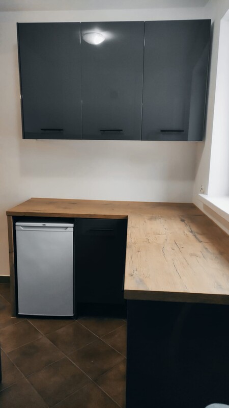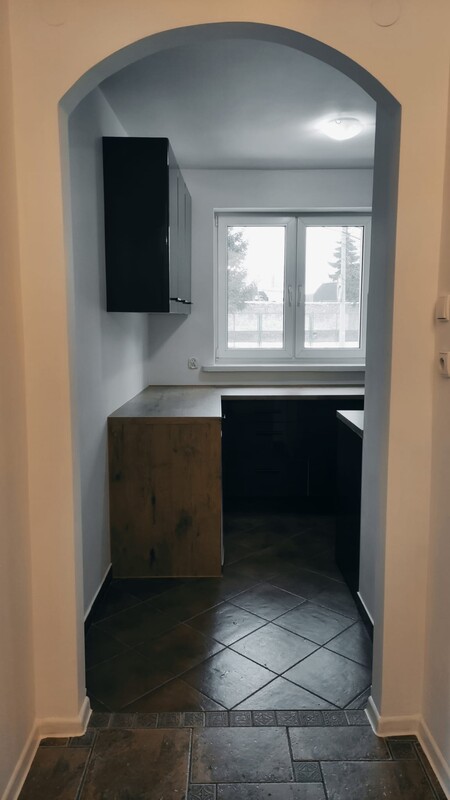 Mieszkanie zostało częściowo wyremontowane i odświeżone w 2025 roku. Wymieniono panele podłogowe, pomalowane zostały ściany we wszystkich pomieszczeniach, mieszkanie wyposażone zostało w nową dużą szafę w przedpokoju, oraz kompletną zabudowę kuchenną. W środku znajdują się podstawowe sprzęty takie jak lodówka, pralka i kuchenka gazowa z piekarnikiem.