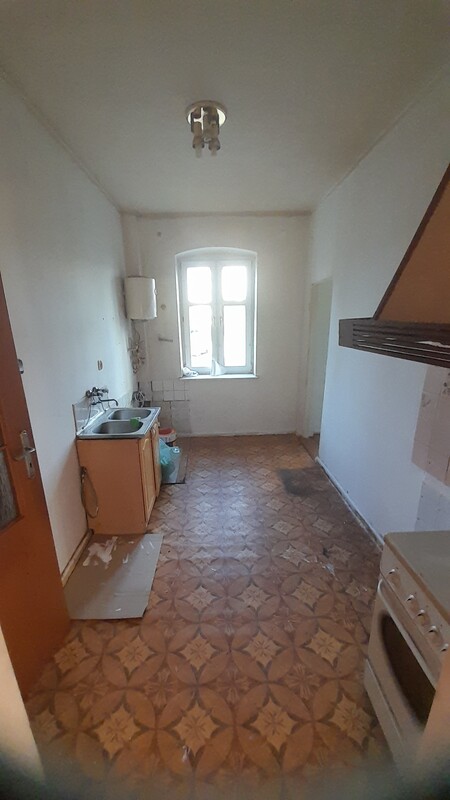Lokal wymaga kapitalnego remontu, co stwarza szerokie możliwości aranżacyjne według własnych potrzeb i gustu. Zarządzanie sprawuje zaangażowana wspólnota mieszkaniowa, a czynsz wynosi zaledwie 450 zł przy jednej osobie i obejmuje ogrzewanie centralne z miasta. Ciepła woda obecnie nie jest doprowadzona – istnieje możliwość montażu bojlera elektrycznego.