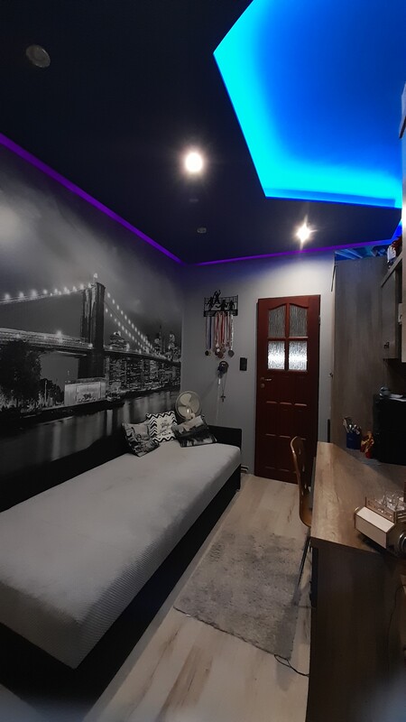 - 2 pokoje (jeden przedzielony ścianką działową – możliwość demontażu)