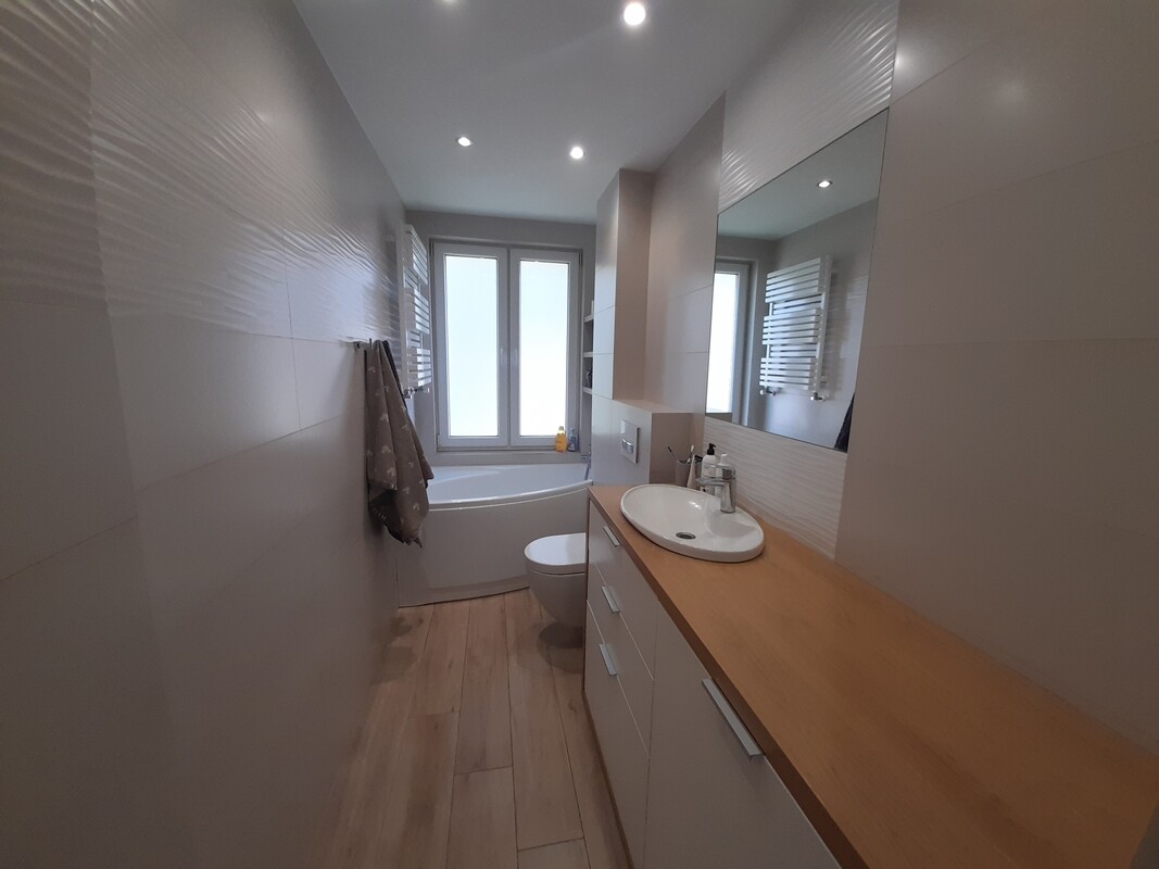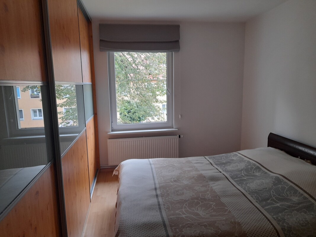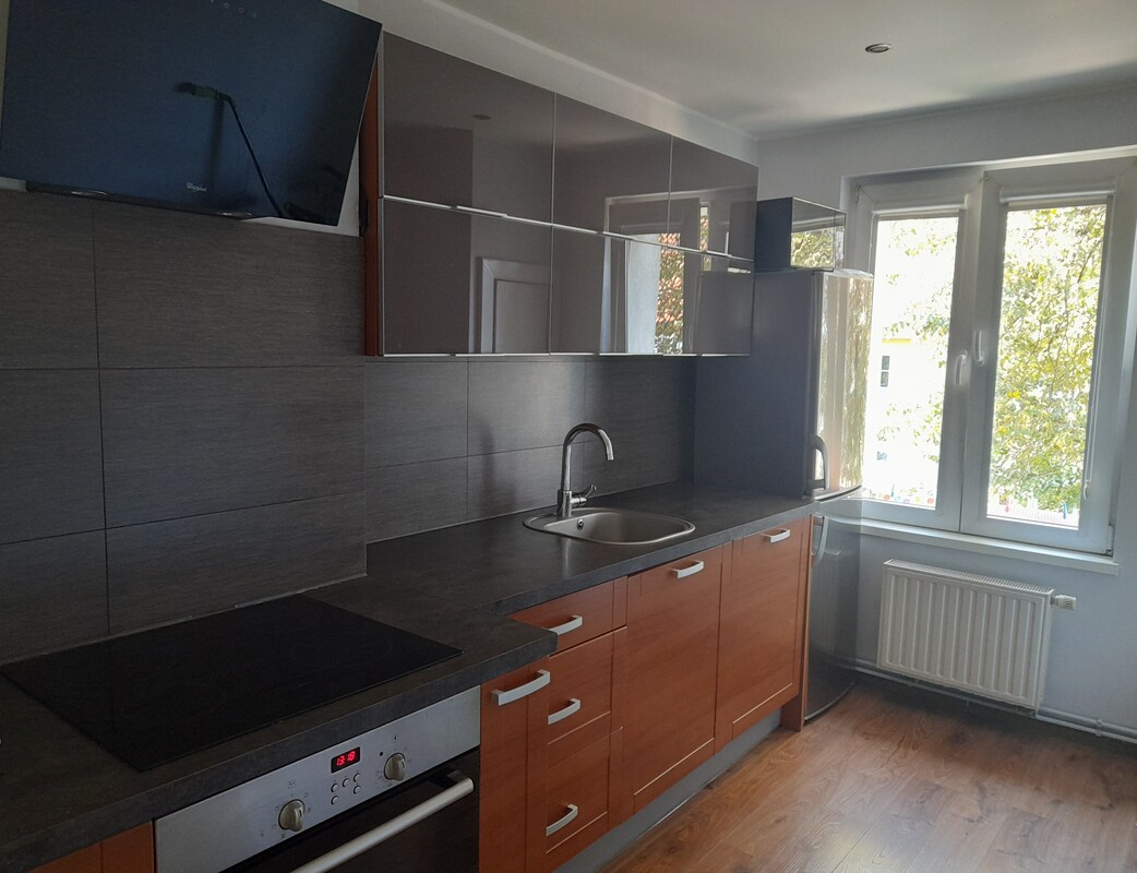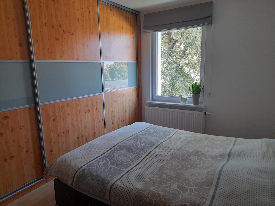 - Układ mieszkania: dwa pokoje, kuchnia, łazienka z WC oraz przedpokój.
