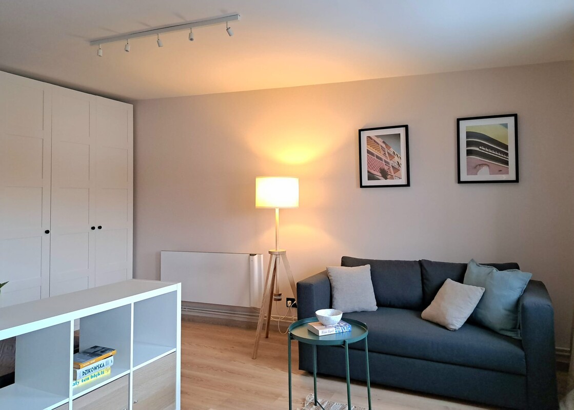 Mieszkanie jest ciepłe i słoneczne dzięki południowo-zachodniej ekspozycji, co sprawia, że przez większość dnia wpada do niej naturalne światło. Lokal jest w pełni umeblowany – wszystkie meble oraz wyposażenie widoczne na zdjęciach są wliczone w cenę, co pozwala na natychmiastowe wprowadzenie się lub szybkie rozpoczęcie wynajmu.