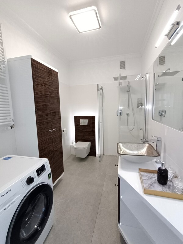 Proponujemy Państwu do wynajęcia luksusowo wykończony apartament, położony na Starym Mieście. Lokal o pow.39,36 m2 znajduje się na IV piętrze w budynku z windą. Z balkonu rozpościera się piękny widok na rzekę Elbląg, katedrę, plac z fontannami. Mieszkanie zostało wyposażone w zabudowę kuchenną z kamiennymi blatami, dużą lodówko - zamrażarkę, zmywarkę, piekarnik, mikrofalówkę, płytę indukcyjną, ekspres do kawy. W części wypoczynkowej znajduje się rozkładana kanapa, stolik kawowy oraz telewizor. Pojemna szafa z drzwiami lustrzanymi w której wykorzystano miejsce na chowane podwójne łóżko z materacem ( bardzo podręczny i lekki system ). Łazienka wyposażona w pralko - suszarkę z kabiną prysznicową. Dodatkowe opłaty to czynsz 485 zł ( zaliczka na wodę i opata za śmieci za 1 osobę). Kaucja zabezpieczająca 3.000 zł. Mieszkanie skierowane do jednej osoby bądź pary, pracującej ( bez zwierząt ). Istnieje możliwość korzystania z pakietu telewizji ( 80 kanałów ) i internetu za dodatkową opłatą 105 zł.