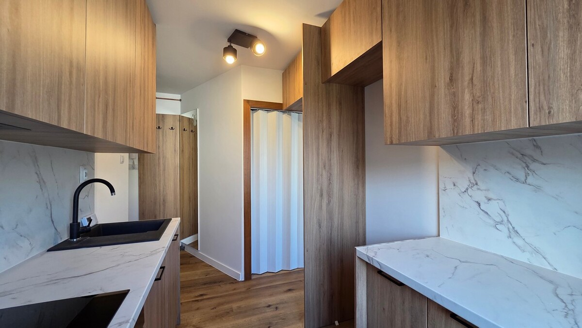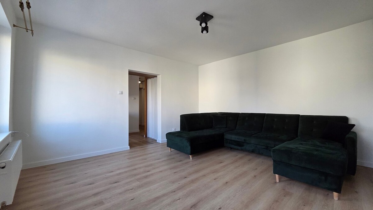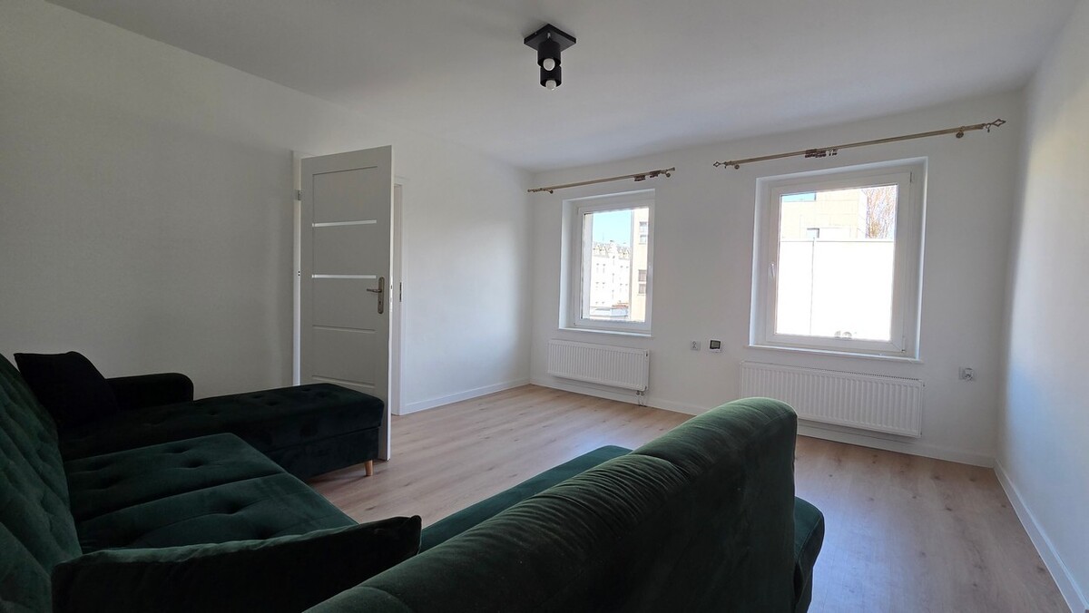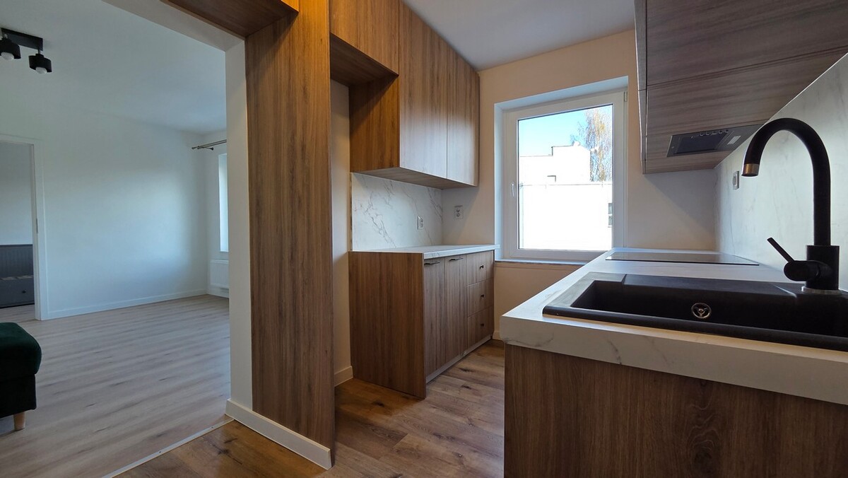 Mieszkanie po generalnym remoncie łącznie z elektryką i hydrauliką, 2 pokoje, oddzielna kuchnia w zabudowie, łazienka, WC, przedpokój, okna PCV.