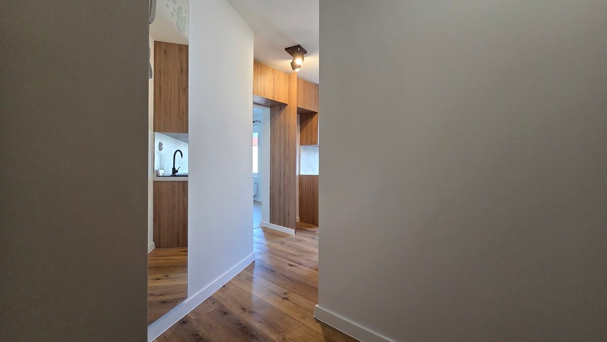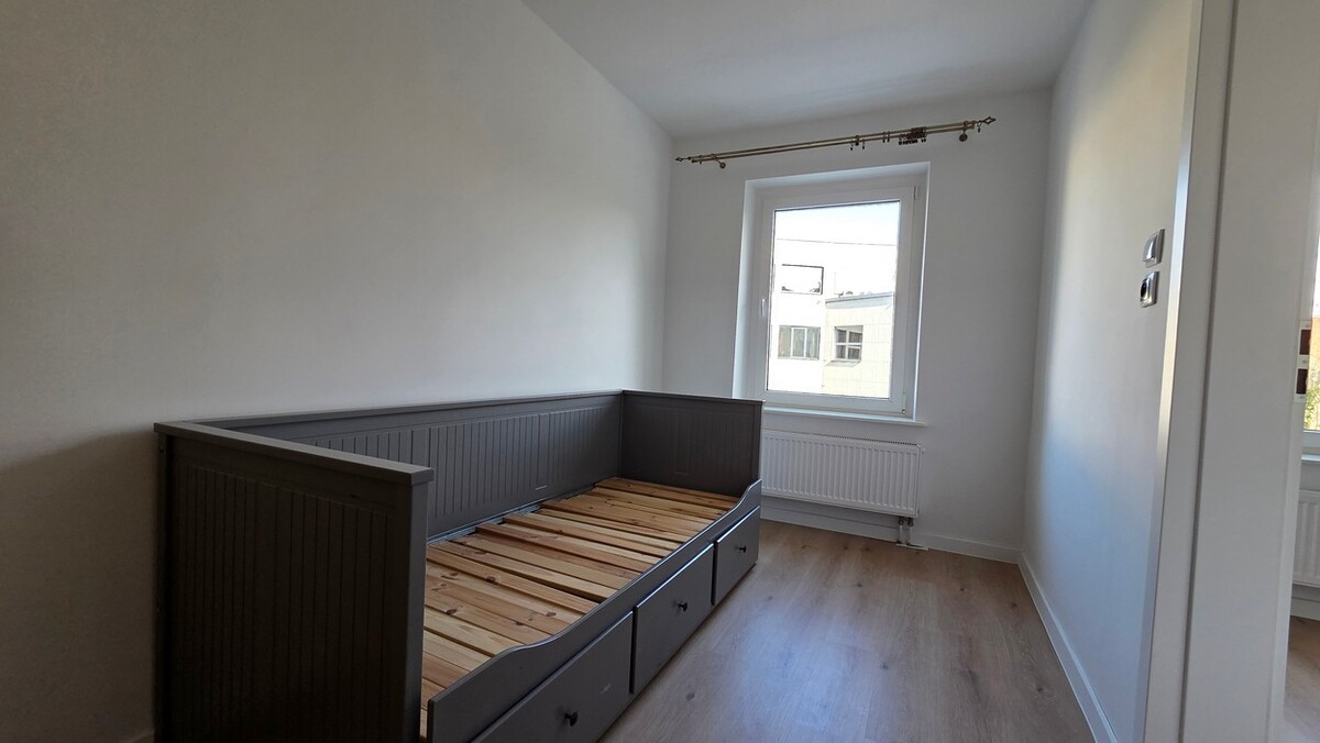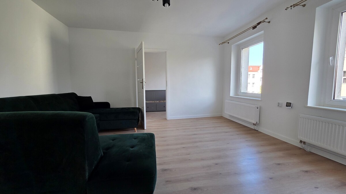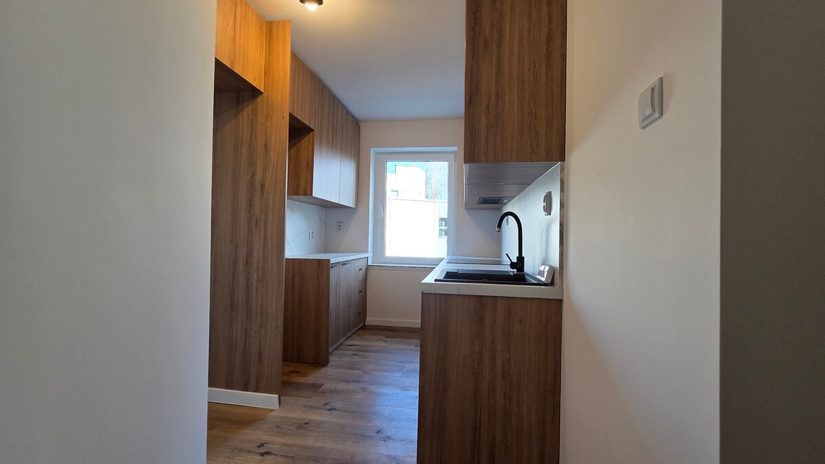 Mieszkanie po generalnym remoncie łącznie z elektryką i hydrauliką, 2 pokoje, oddzielna kuchnia w zabudowie, łazienka, WC, przedpokój, okna PCV.
