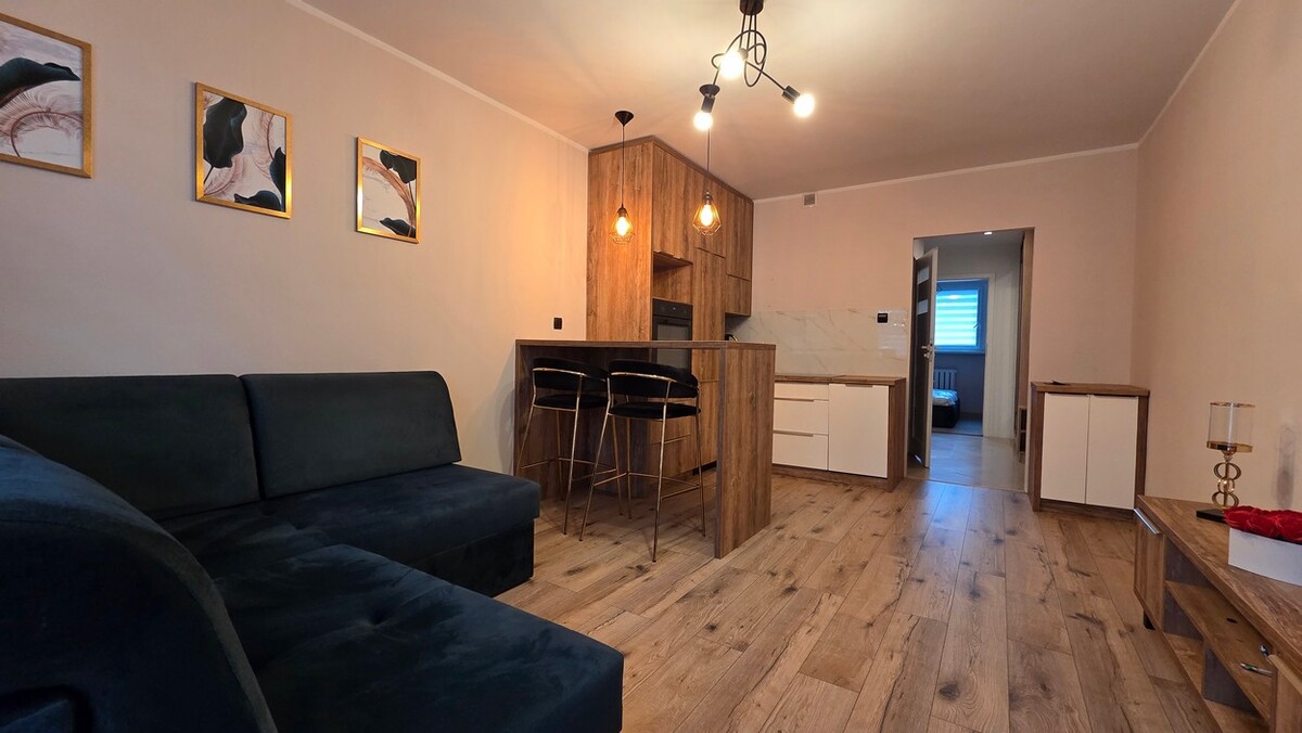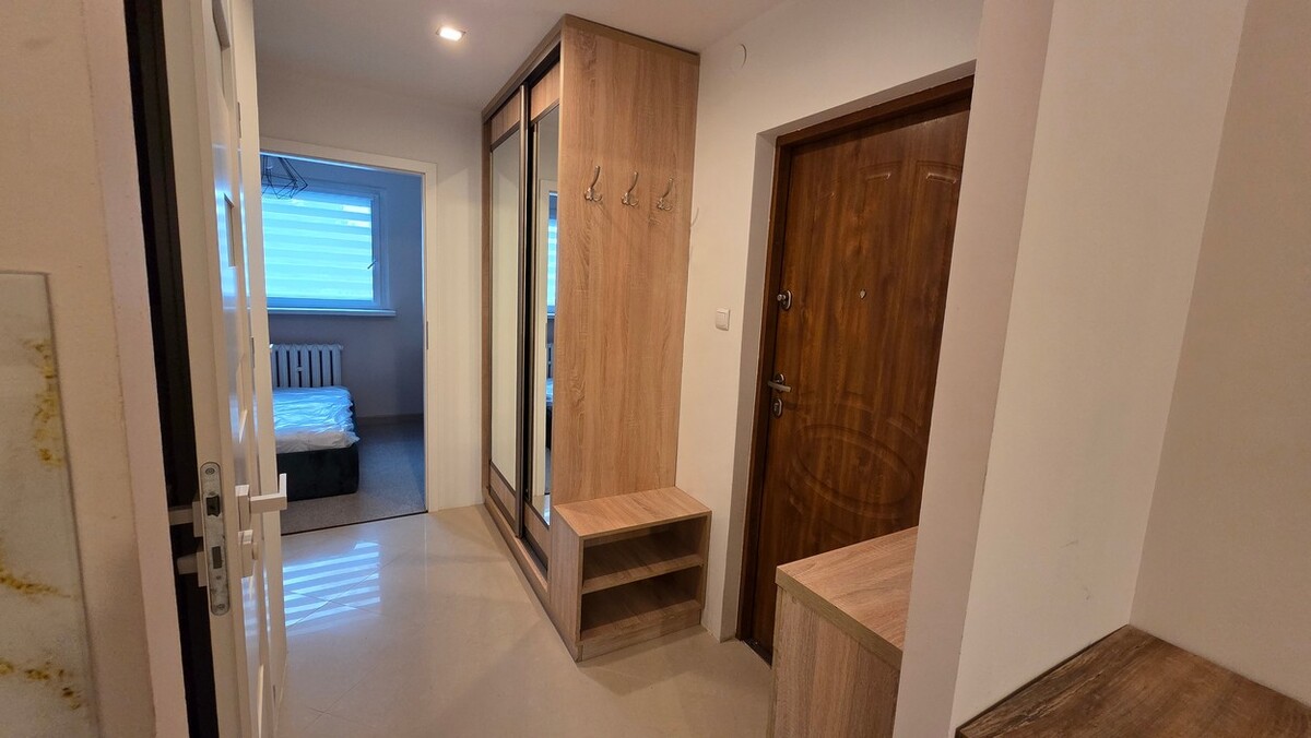 Mieszkanie umeblowane, aneks kuchenny w zabudowie wraz ze sprzętem AGD. W przedpokoju i sypialni szafa pod zabudowę.
