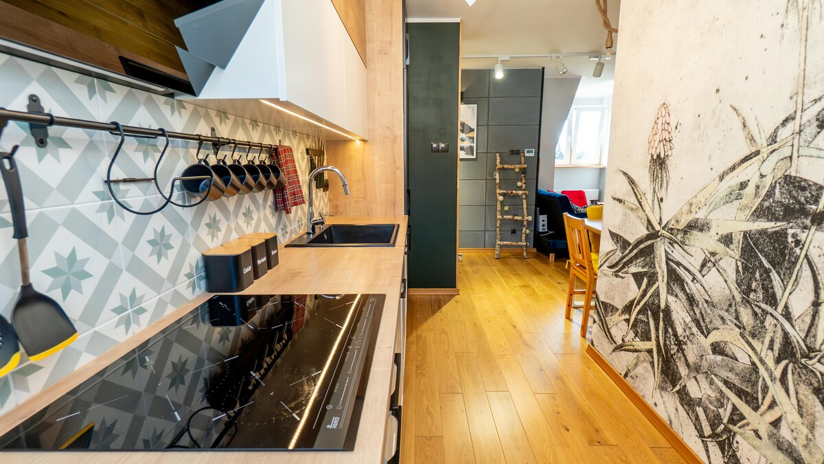 W skład nieruchomości wchodzi jasny i funkcjonalny salon, przytulna sypialnia, nowoczesna kuchnia z pełnym wyposażeniem, a także elegancka łazienka.