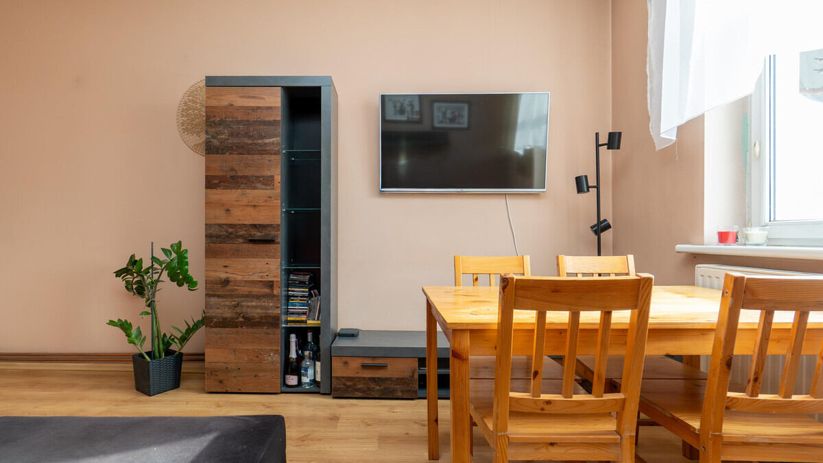 60 m² dobrze rozplanowanej przestrzeni na drugim piętrze kamienicy. Okna od południa i północy sprawiają, że jest jasno i przewiewnie — poranna kawa w kuchni, popołudniowe słońce w salonie, a wieczorem cisza, która pozwala odetchnąć po całym dniu.