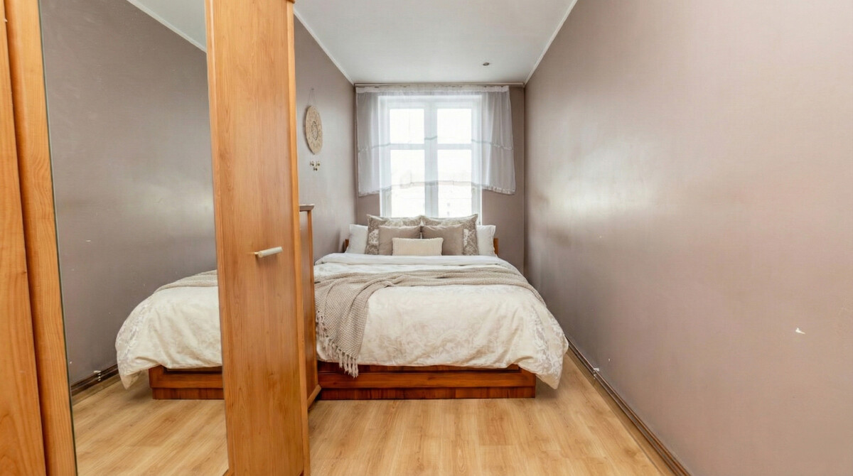 Trzy ustawne pokoje dają przestrzeń do życia po swojemu: sypialnia, pokój dla dziecka, domowe biuro albo miejsce, gdzie wreszcie możesz wcisnąć swoją kolekcję roślin.