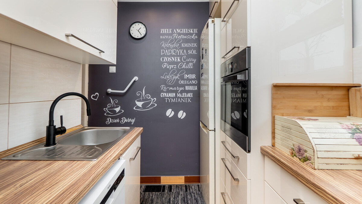 Dużym atutem nieruchomości jest osobna, widna kuchnia, wyposażona w pełną zabudowę meblową oraz komplet sprzętów AGD, które pozostają w cenie mieszkania. To rozwiązanie pozwala na natychmiastowe wprowadzenie się i codzienny komfort użytkowania.