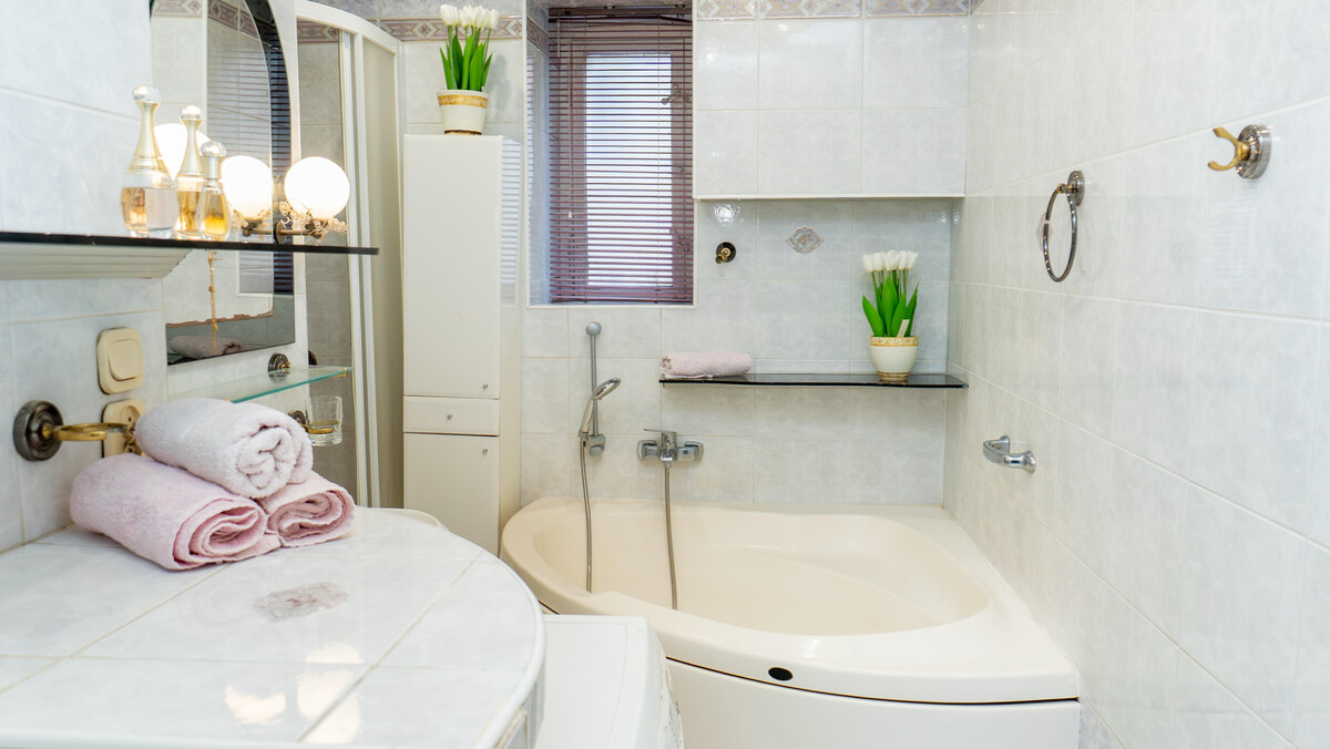 - łazienki z oknem, która pełni funkcję prawdziwego pokoju kąpielowego,
