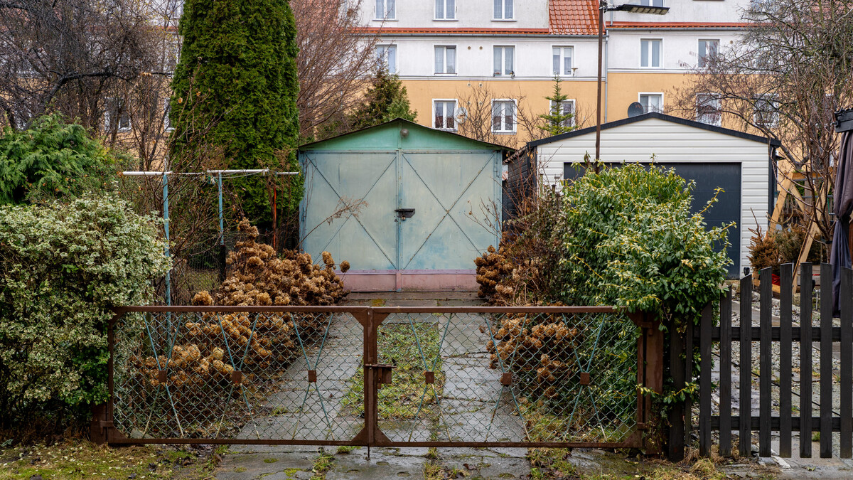 - garaż w ogródku