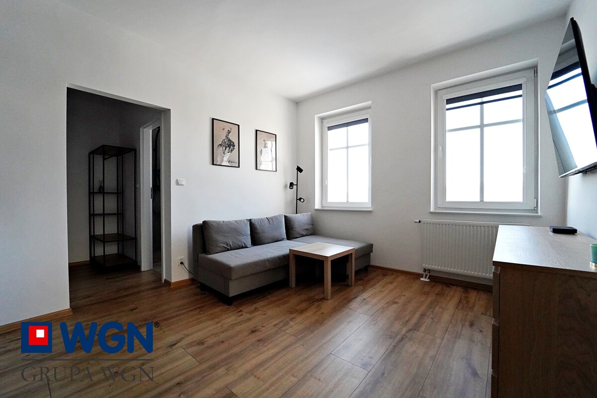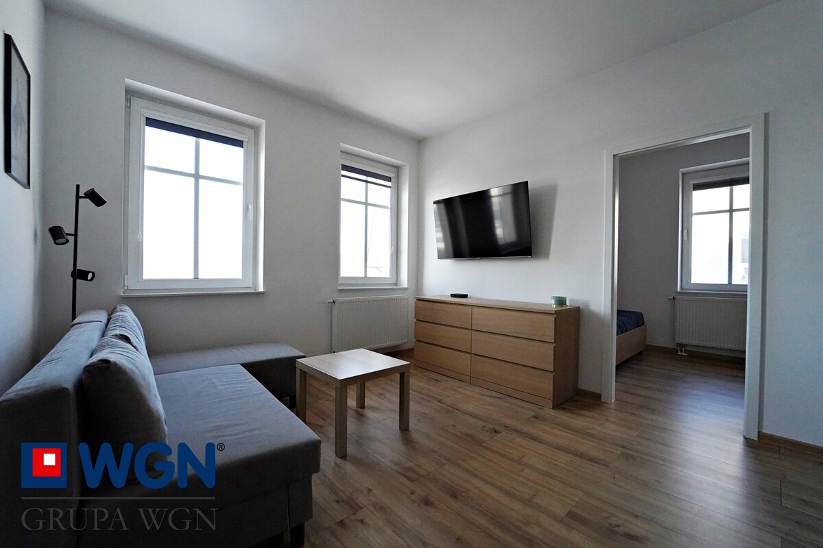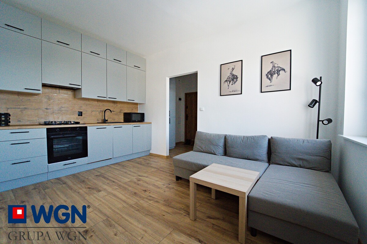 Mieszkanie w pełni wyposażone. W sypialni znajduje się podwójne łóżko z materacem oraz pojemna trzydrzwiowa szafa. W salonie narożna kanapa ze stolikiem oraz szafka rtv z telewizorem. Aneks kuchenny zabudowany na wymiar ze wszystkimi sprzętami AGD tj. lodówka, piekarnik, płyta gazowa, zmywarka. Każdy ze sprzętów posiada gwarancję. Do dyspozycji również pakiet telewizji i internet z umową do końca listopada 2026. Dla najemców dostępny jest również niewielki około 50 metrów ogródek za budynkiem. Mieszkanie jest bardzo dobrze docieplone i bardzo jasne. Wystawa okien na zachód. Ogrzewanie gazowe piecem dwufunkcyjnym z zamkniętą komorą spalania. Piec jest nowy umieszczony w przedpokoju w zabudowanej szafie. Tu również umieszczona została nowa pralka. To idealne mieszkanie dla singla lub pary, która ceni sobie wygodę, bliskość pełnej infrastruktury handlowo-usługowej oraz dobrej komunikacji miejskiej. Najem okazjonalny !!!