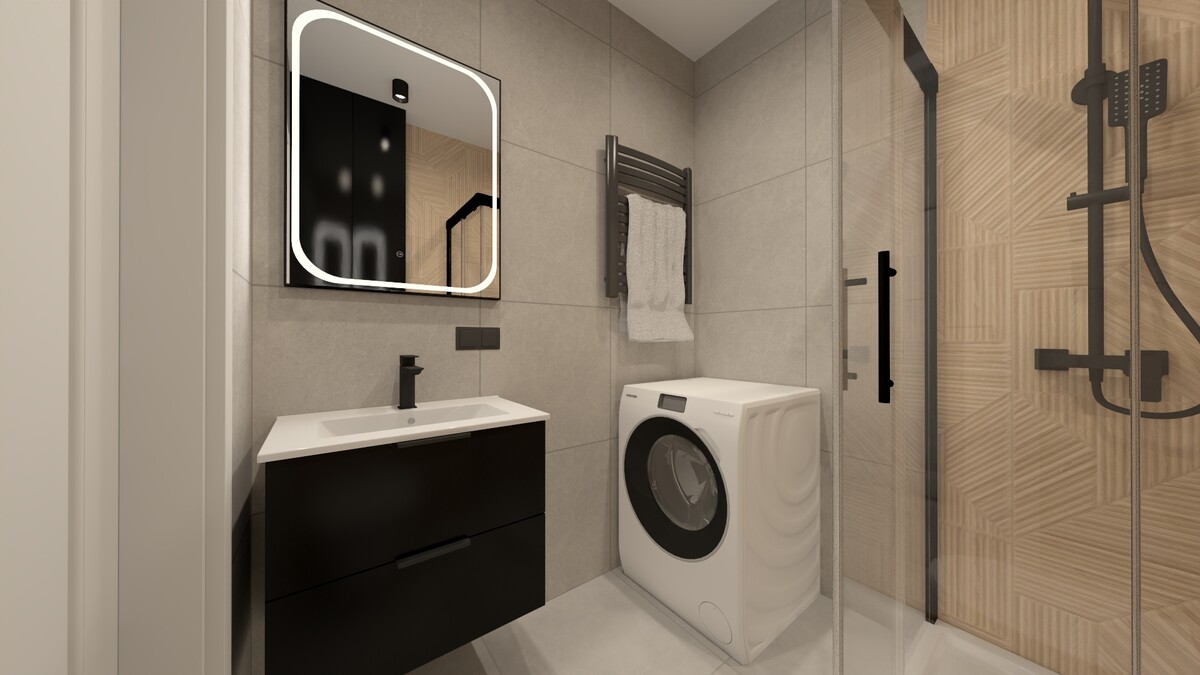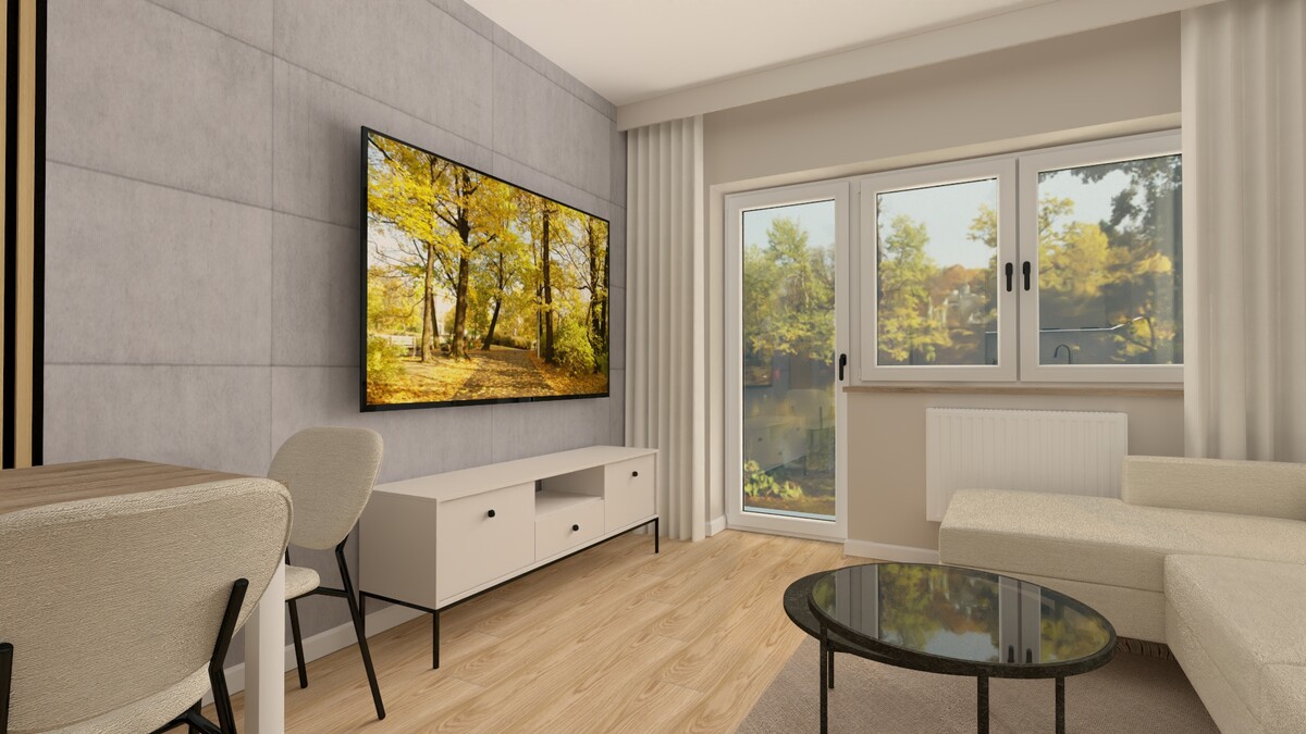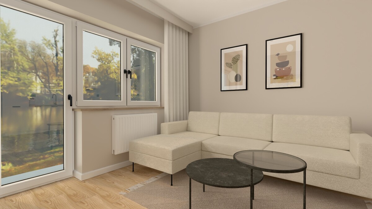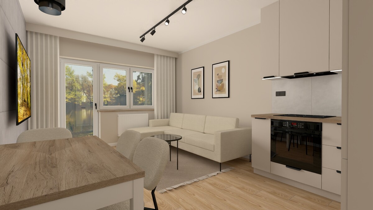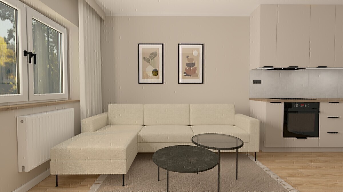 Mieszkanie obecnie przechodzi generalny remont, który zostanie ukończony już pod koniec sierpnia. Zaprezentowane wizualizację są odzwierciedleniem w większości tego co pojawi się w mieszkaniu w ostatecznej wersji po remoncie. Mieszkanie sprzedawane z urządzoną łazienkę oraz kuchnią. Bez mebli "ruchomych" jak łóżka czy szafy, które mają pokazywać potencjał tego mieszkania. W łazience prysznic z przewagą kolorystyki imitującej drewno.