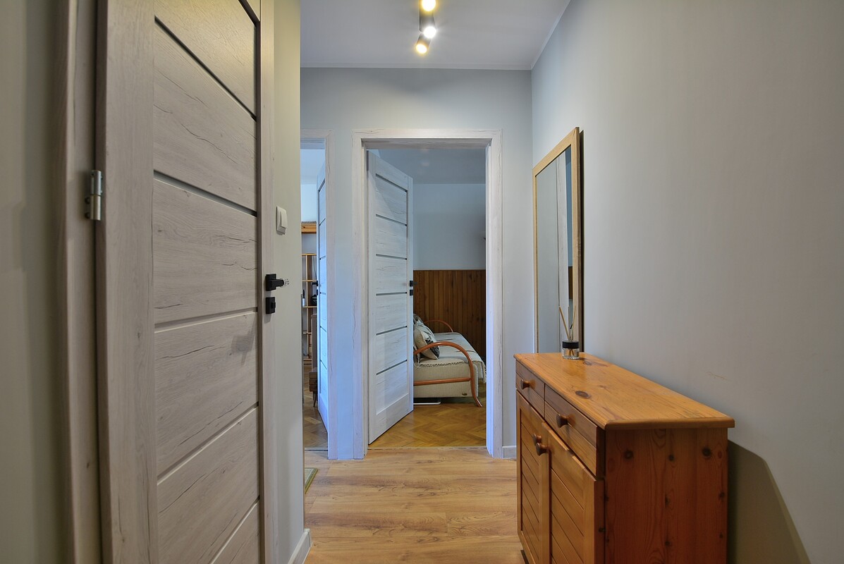 Ekspozycja okien na zachód w salonie, w sypialni i kuchni na wschód. Nowe drzwi wewnętrzne i zewnętrzne, świeżo pomalowane ściany. Mieszkanie umeblowane ze sprzętem AGD. Wszystkie media z miasta, czynsz do spółdzielni mieszkaniowej wynosi 661 zł na jedną osobę. Przytulne mieszkanie do wynajęcia dla singla lub pary. Wolne od zaraz. Najem okazjonalny - wymagane wskazanie lokalu zastępczego w formie notarialnej. Umowa na rok z możliwością przedłużenia.