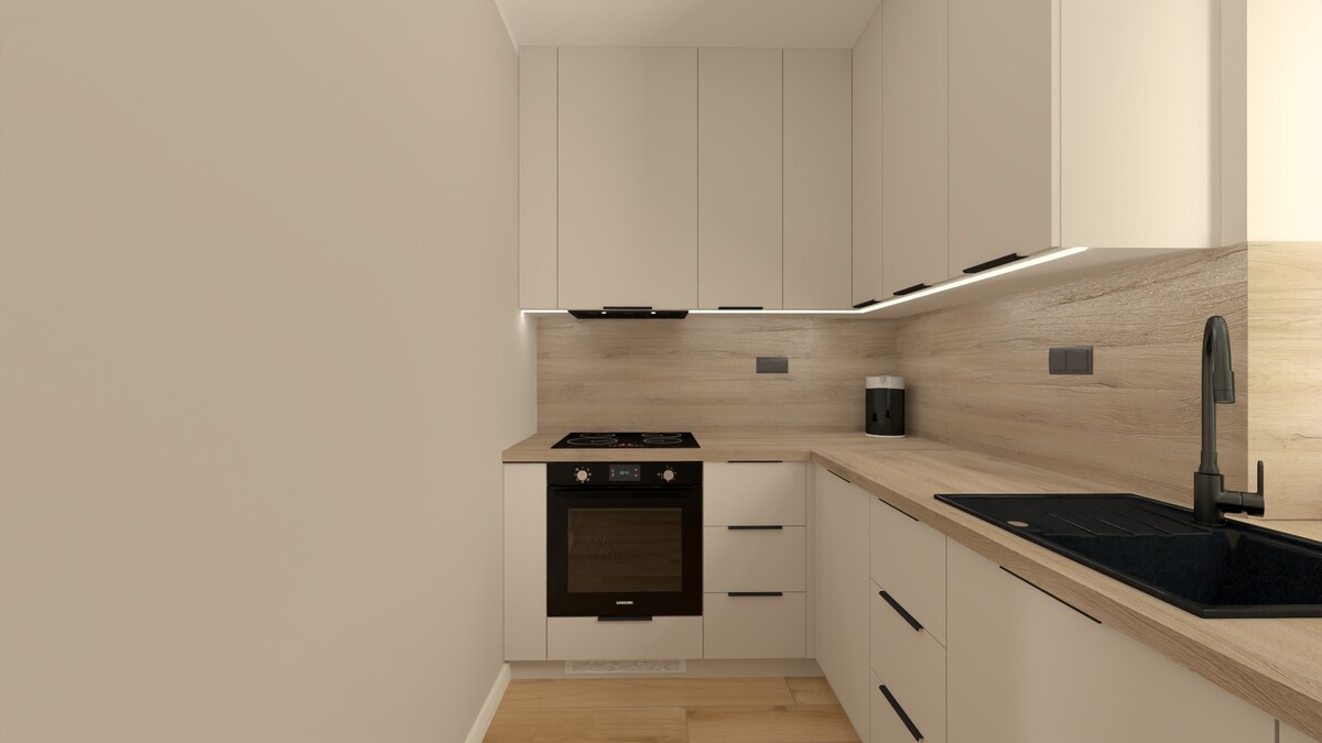 W cenę nieruchomości wliczona jest zabudowa kuchenna i szafa w sypialni.