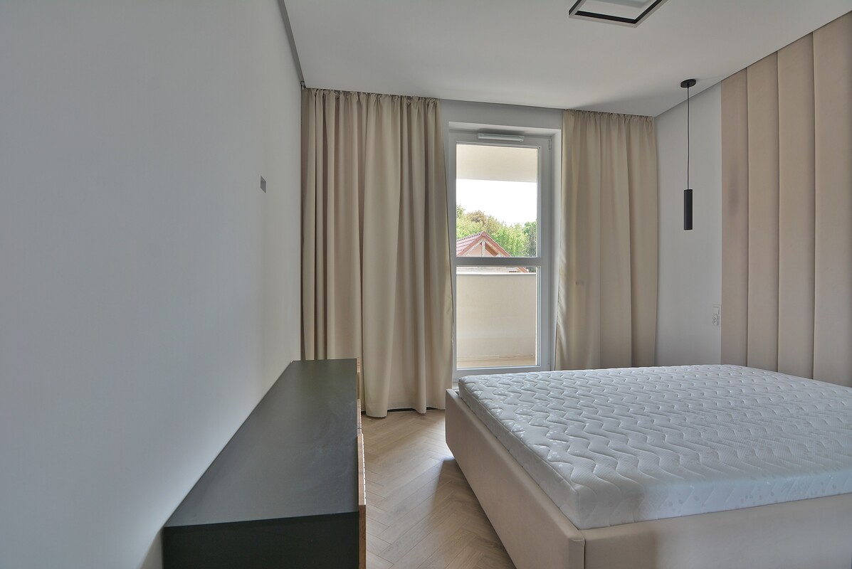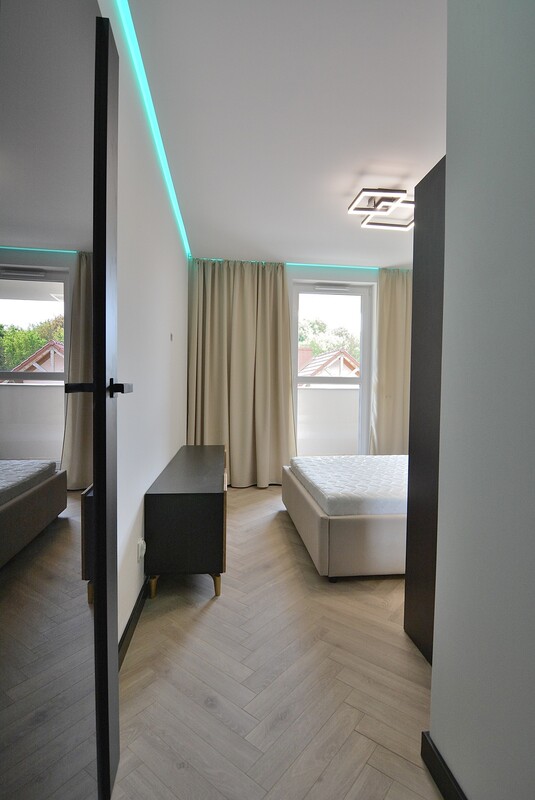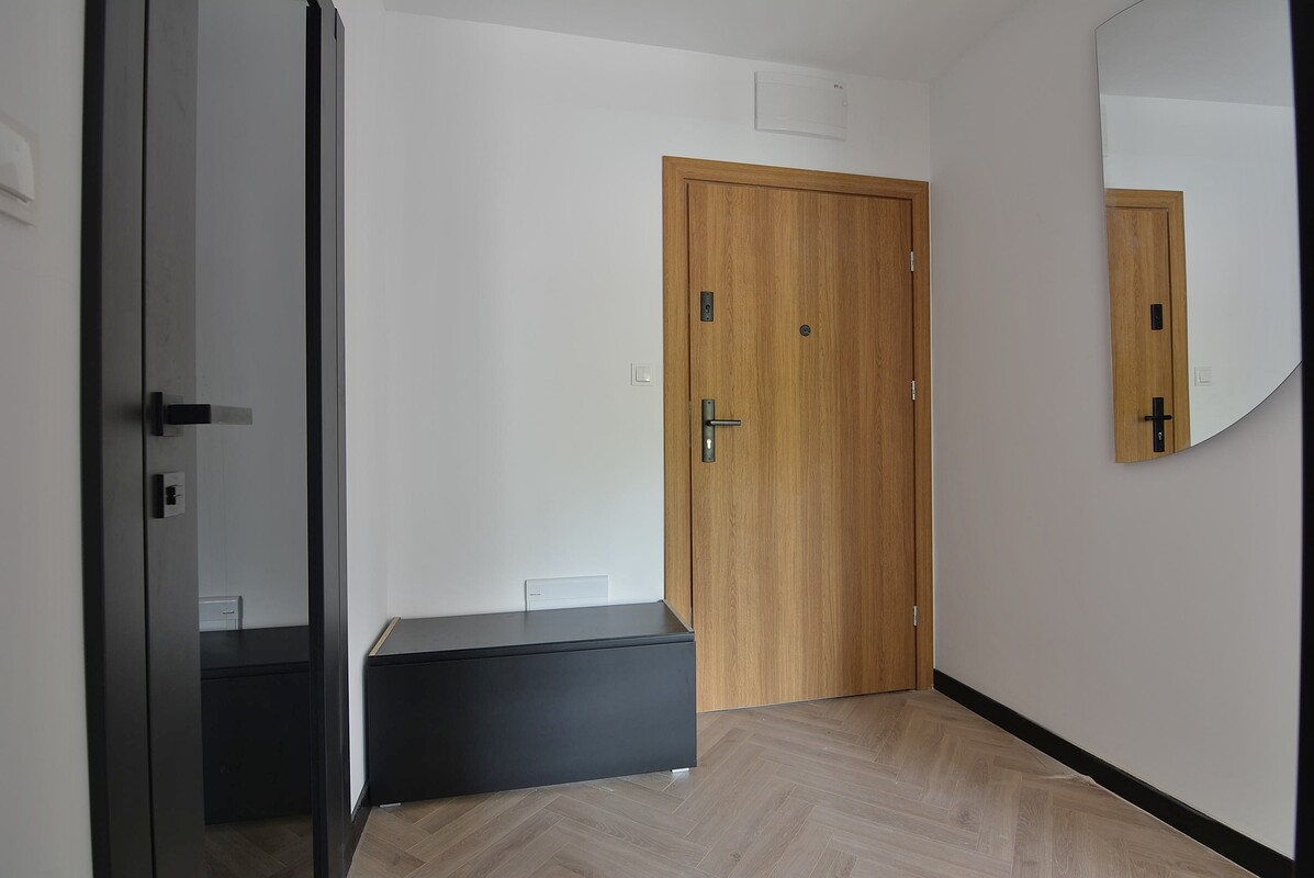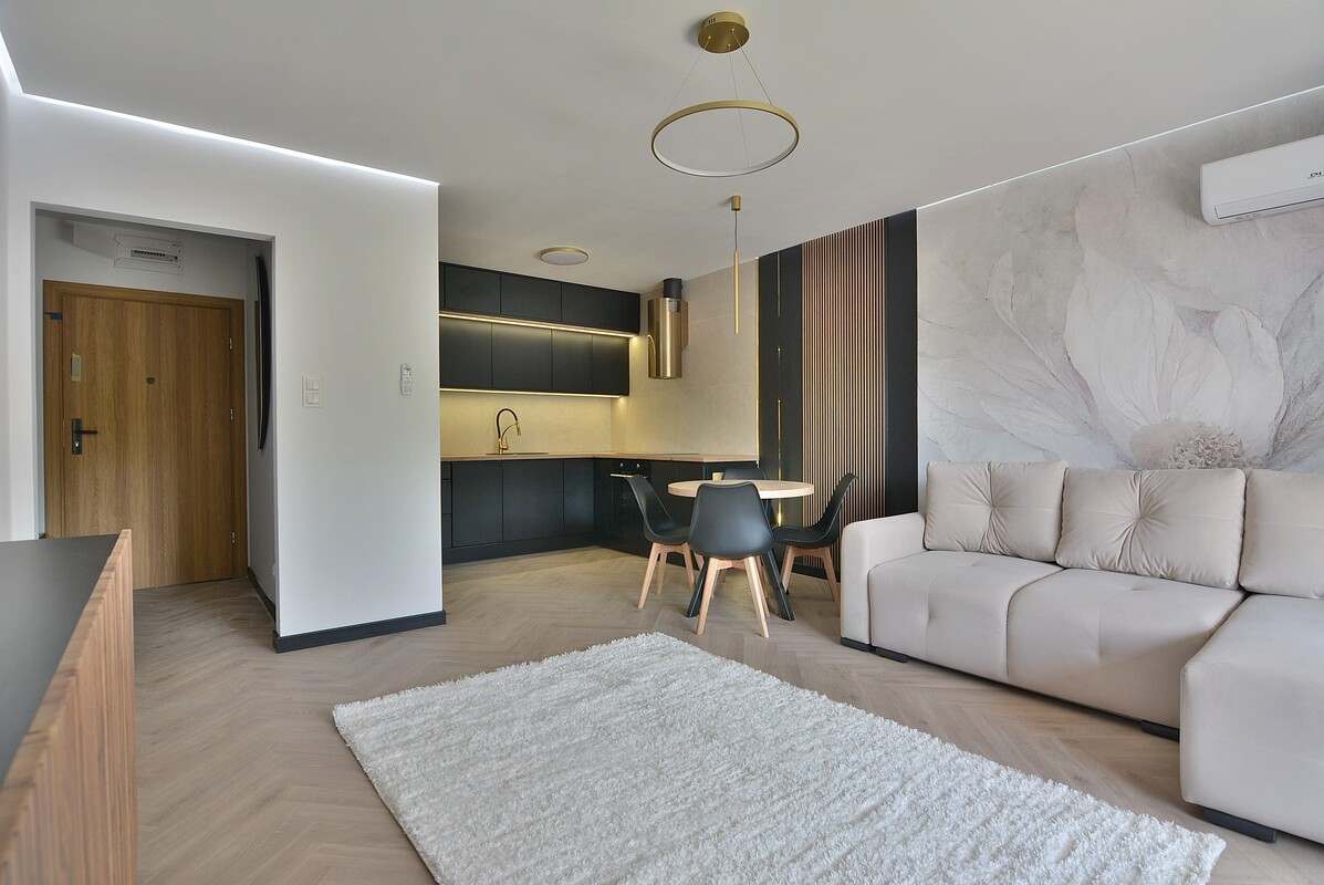 Komfortowe mieszkanie dla wymagającego klienta o powierzchni 45 m2 , składające się z dużego salonu z klimatyzacją, wyposażonego w nowoczesny aneks kuchenny, w którym mamy także oprócz strefy jadalnianej strefę wypoczynkową z nową narożną kanapą, mniejszego pokoju pełniącego funkcję sypialni wyposażonej w pojemną szafę w zabudowie, przedpokoju oraz łazienki wraz z WC. Obydwa pokoje posiadają wyjścia na bardzo duży balkon, zastosowano w nich ciekawe rozwiązania oświetleniowe. Aneks kuchenny wyposażony w nowy, nieużywany sprzęt AGD, w którego skład wchodzi piekarnik z płytą indukcyjną i okapem, lodówka, zmywarka, W łazience nowa pralka i duży prysznic z deszczownicą. Wszystkie media z miasta. Miejsca parkingowe ogólnodostępne. Do mieszkania przynależy komórka lokatorska. Mieszkanie do wynajęcia od 1 stycznia 2026 r dla singla lub pary, ceniących sobie komfort, ciszę i spokój, a zarazem bliskość infrastruktury miejskiej.