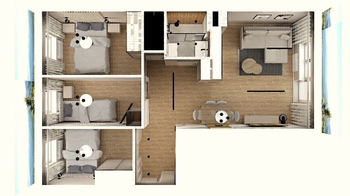 Podczas remontu została wymieniona hydraulika i elektryka. Mieszkanie zaprojektowano w jasnych barwach z czarnymi dodatkami, które będą cieszyły nowego właściciela przez długie lata.