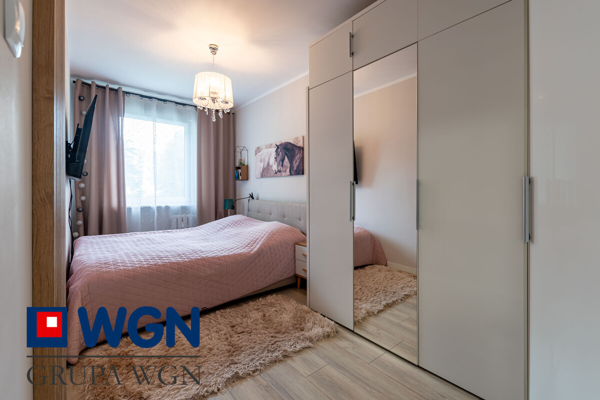 Na podłodze w pokojach panel. Balkon duży, przestronny, w otoczeniu zieleni, na którego posadzce położono deskę tarasową. Dwa pozostałe pokoje mogą pełnić rolę sypialni, lub gabinetu. Dużą zaletą tej nieruchomości jest osobna łazienka i osobna toaleta. W łazience wanna oraz dużo dodatkowego oświetlenia oraz nowoczesne płytki 3D. Kuchnia przygotowana na wymiar przez stolarza, z zamontowanymi sprzętami agd, z dużym blatem roboczym, to idealna przestrzeń dla osób, które uwielbiają spędzać czas w kuchni. W 2021 roku właściciel przeprowadził generalny remont, podczas którego została wymieniona między innymi instalacja elektryczna oraz wodno-kanalizacyjna. Dodano także bardzo dużo nowoczesnych rozwiązań oświetleniowych, dzięki czemu mieszkanie jest jasne i dobrze doświetlone. Mieszkanie o wysokim standardzie nie wymaga żadnych nakładów finansowych, jest gotowe do wprowadzenia. Wszystkie media w mieszkaniu pochodzą z sieci miejskich. Do mieszkania przynależy piwnica o wymiarach 3,30 m2 i jest zarządzane przez Spółdzielnie Mieszkaniową JAR.