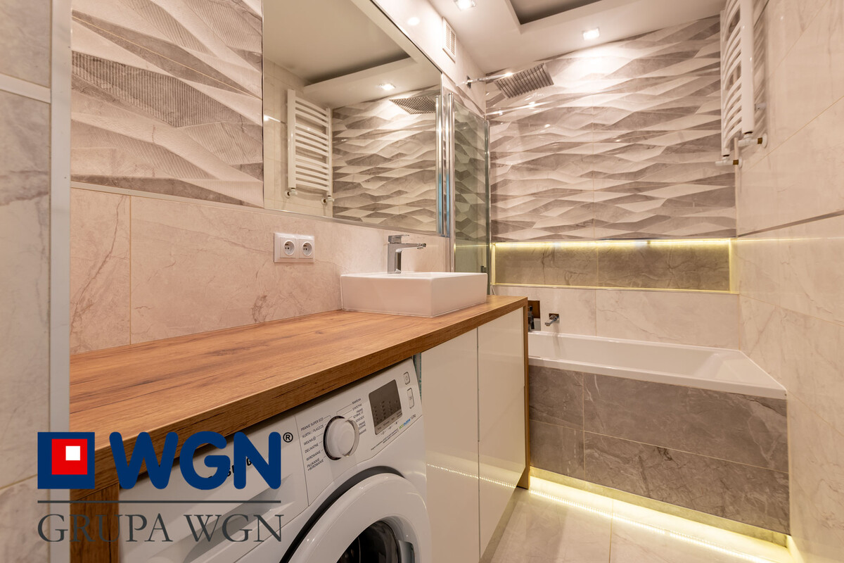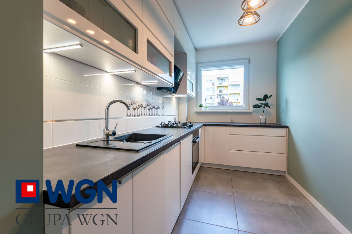 Na podłodze w pokojach panel. Balkon duży, przestronny, w otoczeniu zieleni, na którego posadzce położono deskę tarasową. Dwa pozostałe pokoje mogą pełnić rolę sypialni, lub gabinetu. Dużą zaletą tej nieruchomości jest osobna łazienka i osobna toaleta. W łazience wanna oraz dużo dodatkowego oświetlenia oraz nowoczesne płytki 3D. Kuchnia przygotowana na wymiar przez stolarza, z zamontowanymi sprzętami agd, z dużym blatem roboczym, to idealna przestrzeń dla osób, które uwielbiają spędzać czas w kuchni. W 2021 roku właściciel przeprowadził generalny remont, podczas którego została wymieniona między innymi instalacja elektryczna oraz wodno-kanalizacyjna. Dodano także bardzo dużo nowoczesnych rozwiązań oświetleniowych, dzięki czemu mieszkanie jest jasne i dobrze doświetlone. Mieszkanie o wysokim standardzie nie wymaga żadnych nakładów finansowych, jest gotowe do wprowadzenia. Wszystkie media w mieszkaniu pochodzą z sieci miejskich. Do mieszkania przynależy piwnica o wymiarach 3,30 m2 i jest zarządzane przez Spółdzielnie Mieszkaniową JAR.