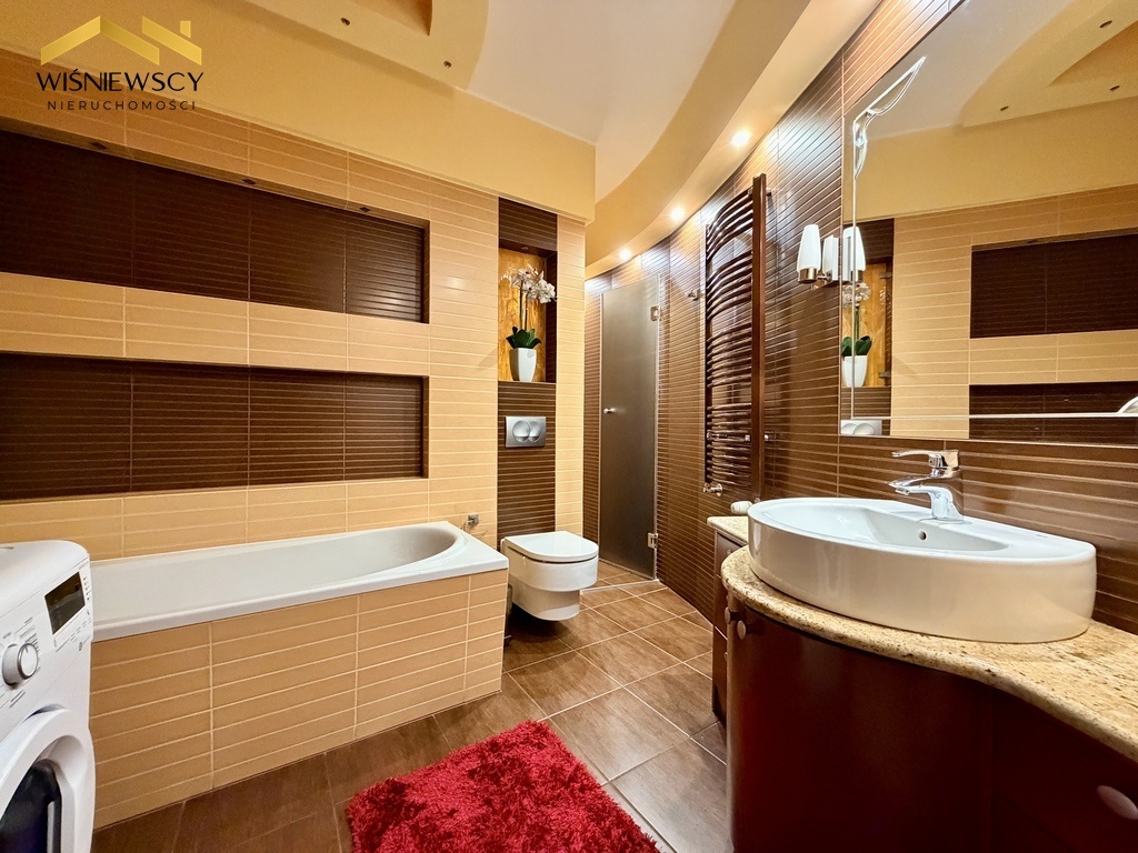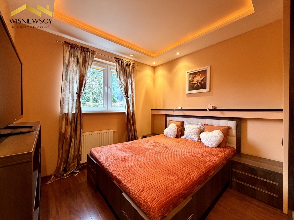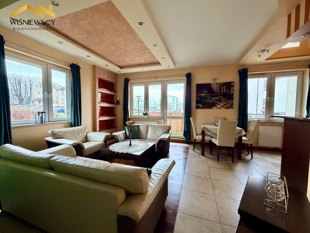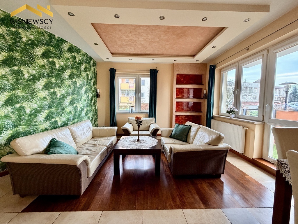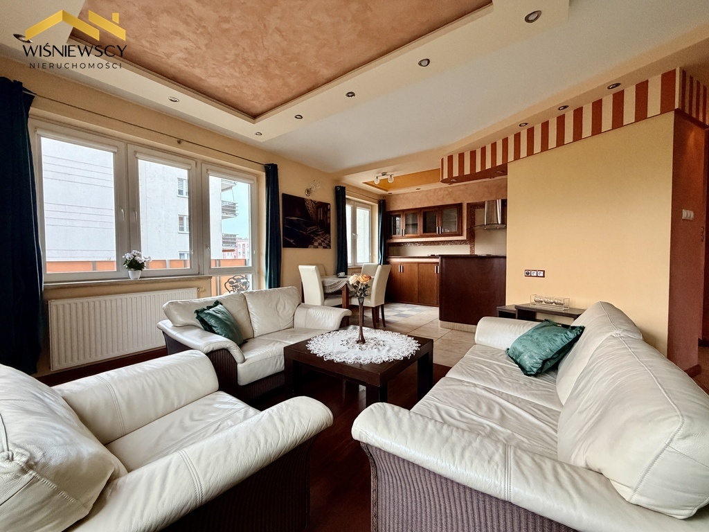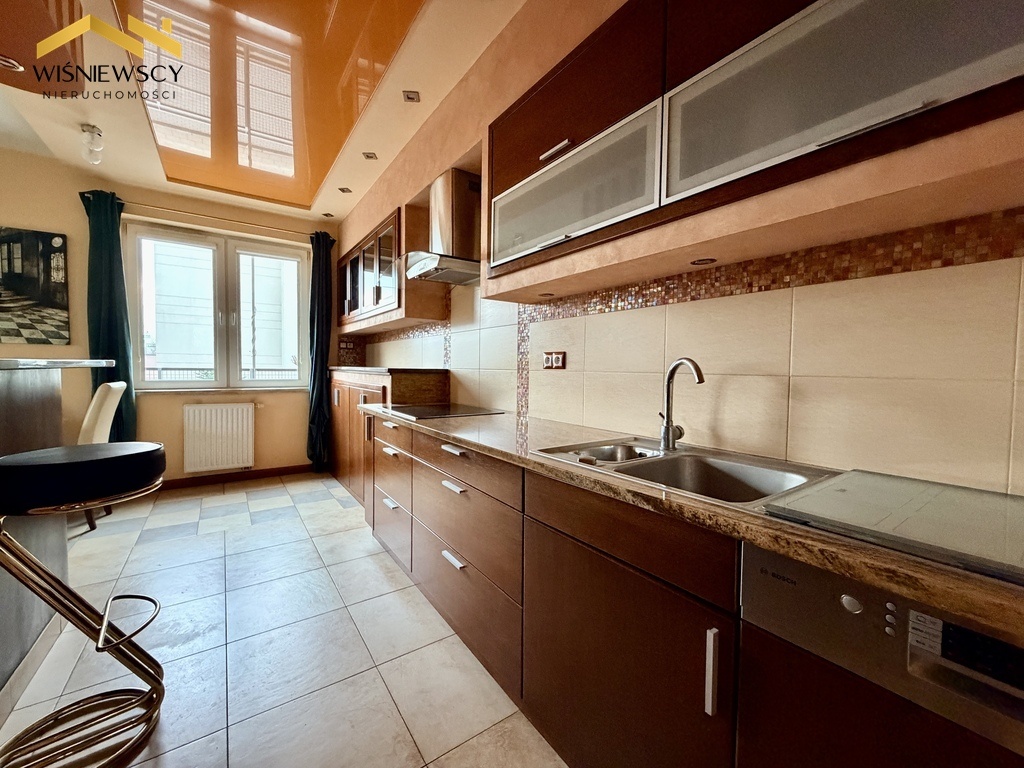 Na sprzedaż przestronne i funkcjonalne mieszkanie o powierzchni 65 m², położone na parterze budynku z 2008 roku. Lokal składa się z trzech pokoi, w tym przestronnego salonu z otwartą kuchnią, dwóch sypialni, dużej łazienki oraz praktycznego pomieszczenia gospodarczego. Do mieszkania przynależy również piwnica o powierzchni 3,1 m². Kuchnia i łazienka zostały wykończone z dbałością o detale – zastosowano tu blaty z naturalnego granitu, fronty fornirowane drewnem, a całość podkreśla napinany sufit z efektownym oświetleniem LED, nadający wnętrzu nowoczesnego i eleganckiego charakteru. Łazienka oferuje wysoki komfort użytkowania dzięki wannie z hydromasażem oraz oddzielnemu prysznicowi. Dużym atutem mieszkania jest przestronny balkon, idealny do wypoczynku. Przemyślana ekspozycja okien zapewnia komfort przez cały rok, salon i kuchnia skierowane są na wschód i południe, natomiast sypialnie na północ, dzięki czemu wnętrza są jasne, a jednocześnie nie nagrzewają się nadmiernie latem. Mieszkanie jest podłączone do wszystkich mediów z sieci miejskiej i stanowi doskonałą propozycję dla osób ceniących wygodę, jakość wykończenia oraz funkcjonalny układ pomieszczeń.