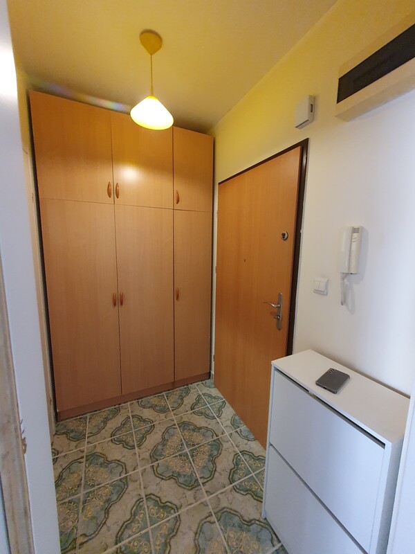 Lokal składa się z dużego pokoju, oddzielnej kuchni, przedpokoju z zabudową oraz łazienki.