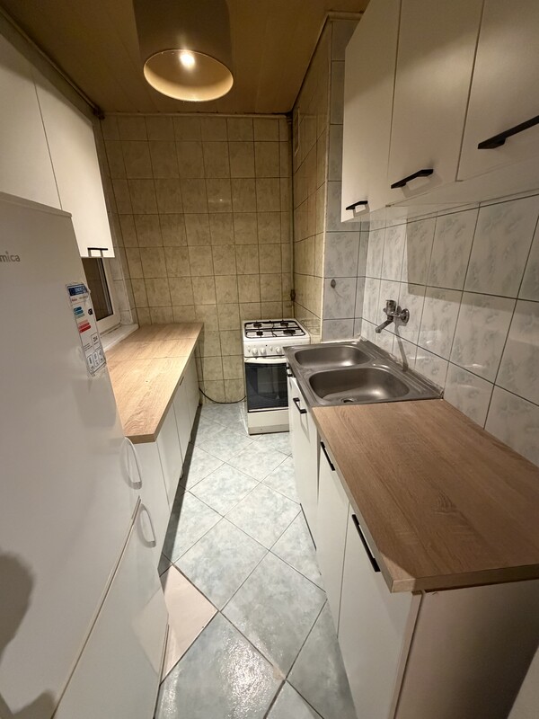- oddzielna kuchnia z oknem, wyposażona w nową kuchenkę gazową, szafki, lodówkę i zlewozmywak,
