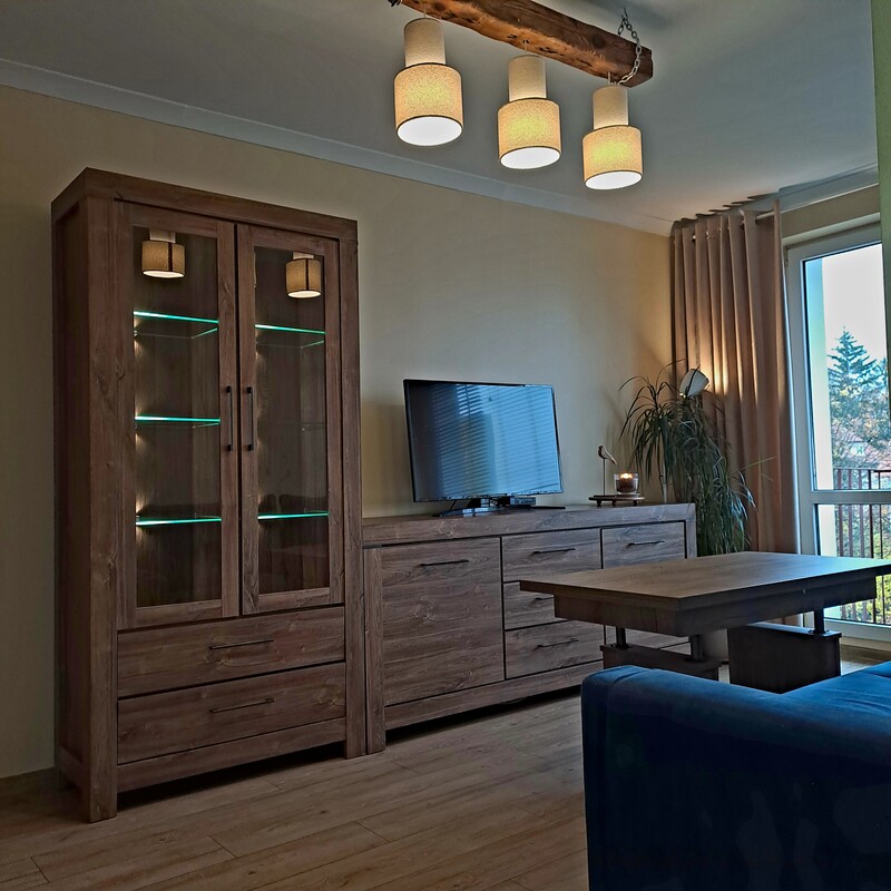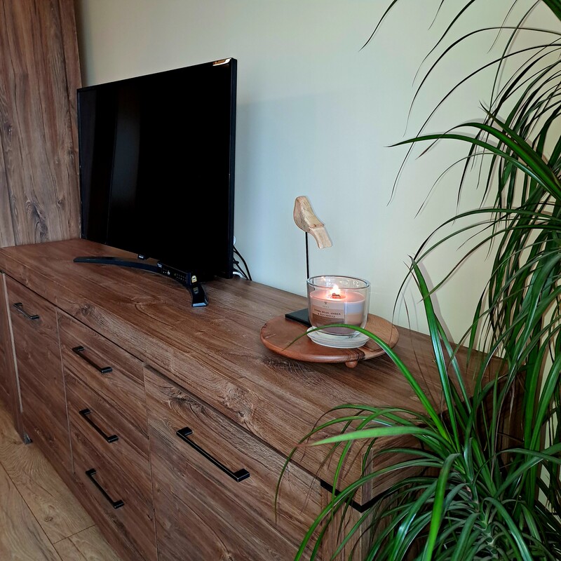 Mieszkanie w pełni wyposażone w sprzęt AGD RTV. W salonie duża garderobiana szafa. Nowe meble, kanapa. We wszystkich oknach drewniane żaluzje. W sypialni nowe duże kontynentalne łóżko. Mieszkanie dla singla lub pary.