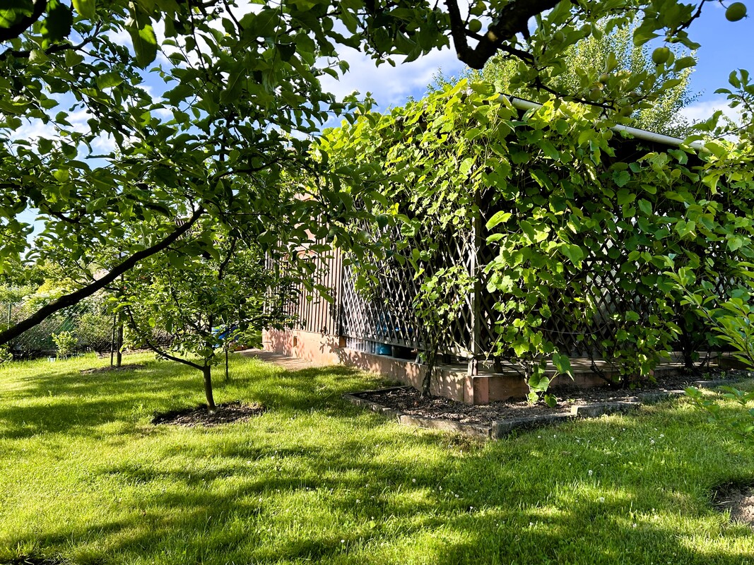 Działka ROD 380 m2 Bielany – podpiwniczona altana, prąd, woda, nasadzenia