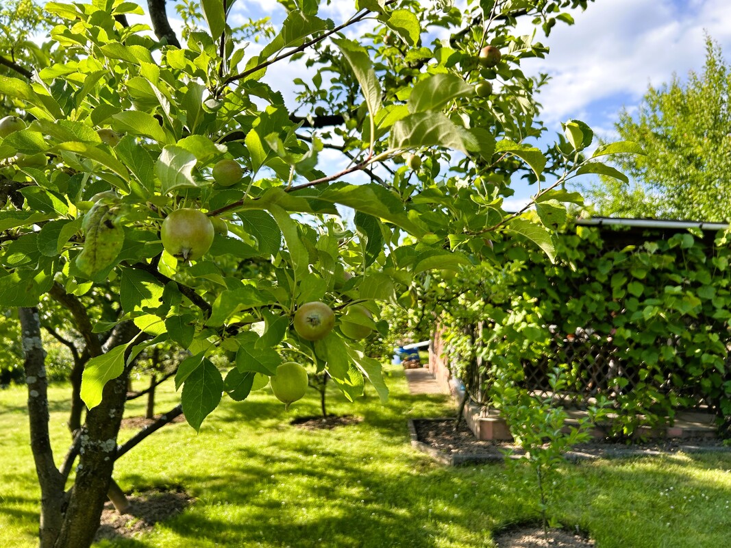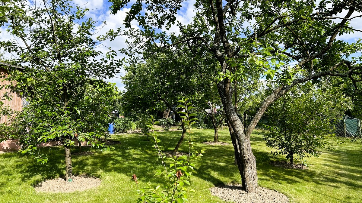 - Drzewa owocowe: jabłonie, śliwy, wiśnie, czereśnie.