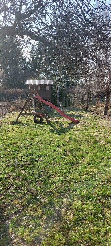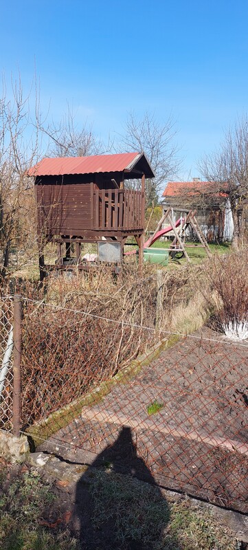 Na działce dostęp do prądu i wody oraz wc. Altanka murowana - podpiwniczona + strych, na działce dodatkowo kuchnia letnia z wiatą + folia na warzywa. Na części działki, domek dla dzieci oraz huśtawki.
