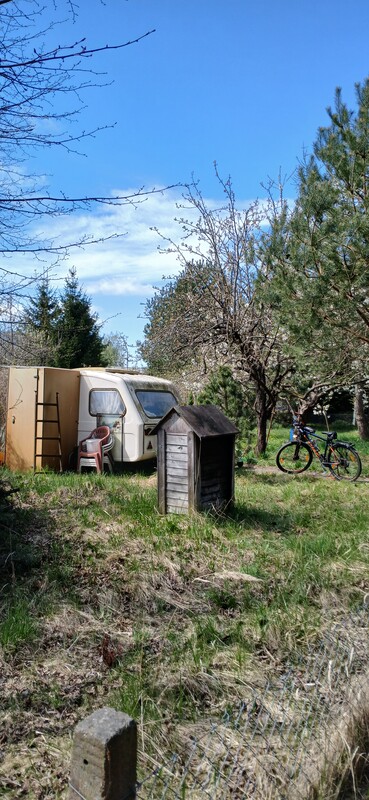 Przyczepa oraz stół do grillowania znajduje się w dalekiej odległości od drogi głównej, co zapewnia ciszę i spokój.