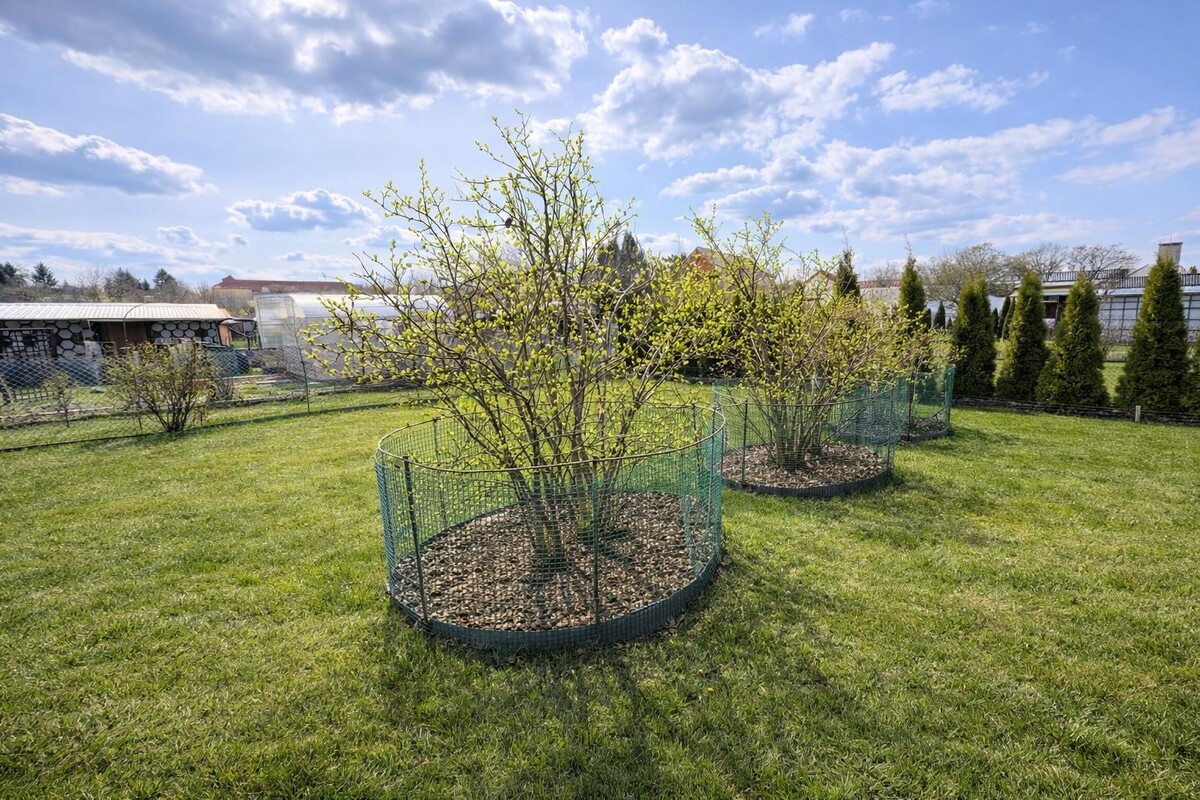 Działka jest zadbana i pełna zieleni, a jej ogromnym atutem są liczne nasadzenia owocowe. Znajdziesz tu m. in. borówki amerykańskie, maliny, porzeczki, jabłonie, wiśnie oraz wiele innych owoców, które pozwolą cieszyć się naturalnymi plonami przez cały sezon.
