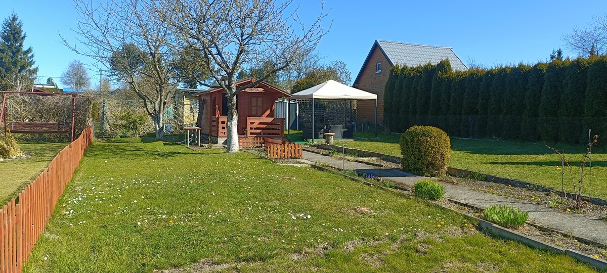 Sprzedam działkę położoną na terenie Rodzinnego Ogrodu Działkowego im. Kopernika przy ul. Klonowej w Elblągu. Na terenie działki znajduje się domek wraz z tarasem oraz łazienka i pomieszczenie gospodarcze. W domku znajdują się meble kuchenne, nastawna kuchenka gazowa, stół z krzesłami oraz sofa. Łazienka wyposażona jest w kompakt WC oraz wannę. Działka jest ogrodzona. Prąd na działce jest przez cały rok, woda z miasta.