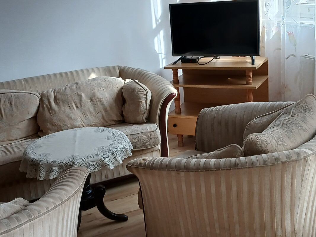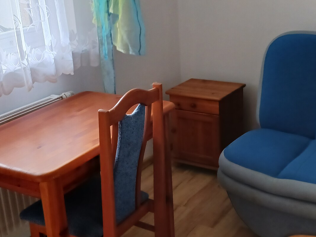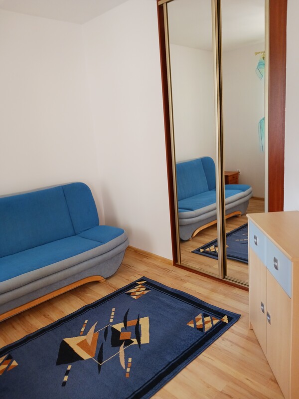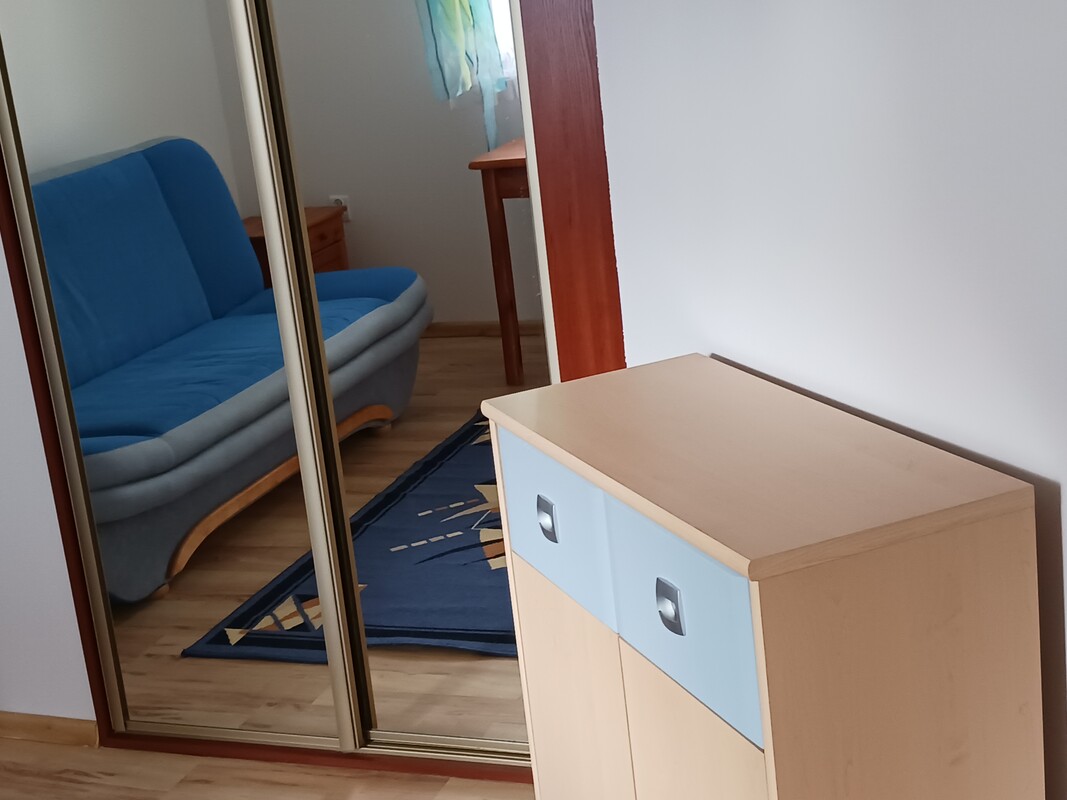 Pokój wyposażony jest w wersalkę, szafę, szafkę, stół, krzesło. Pokój zamykany na klucz. W mieszkaniu są 3 pokoje pod wynajem ( 2 pokoje wynajęte przez 2 studentki).