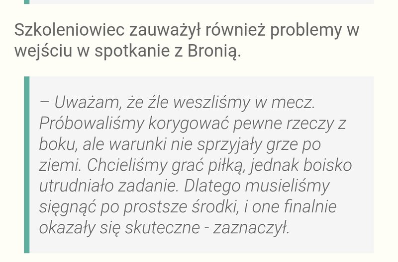 Szkoleniowiec zauważył również problemy w wejściu w spotkanie z Bronią.