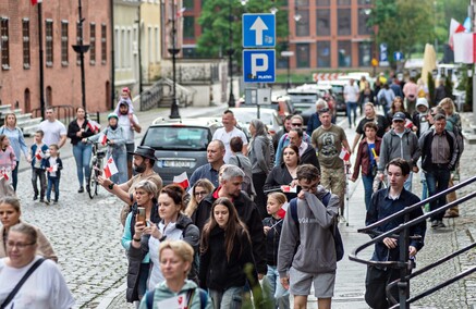 "Jestem tu, bo syn miał uczestniczyć w pochodzie". "Jestem tu, bo to święto naszej narodowej flagi". "Dziewczyna mnie tu przyprowadziła, bo chce dostać dobrą ocenę w szkole" - słyszymy od naszych rozmówców, kiedy jeszcze nie ma pewności, czy pogoda nie przekreśli możliwości realizacji wydarzenia. Ostatecznie marsz przechodzi ulicami starówki.