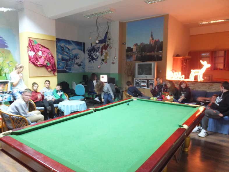 Zajęcia rekreacyjno-sportowe, zabawy ruchowe, gry zespołowe, turnieje piłki nożnej, tenisa stołowego, bilarda;