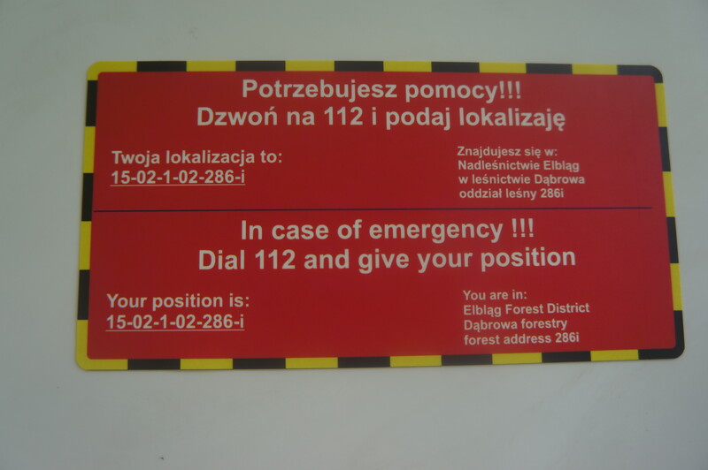 Leśnicy wspólnie z policjantami przygotowali specjalne naklejki, które wskażą nam, co mamy robić, gdy zgubimy się w lesie albo pilnie potrzebujemy wezwać pomoc. Rozmieszczono je na leśnych parkingach, przy wieżach widokowych oraz innych punktach turystycznych, które należą do Nadleśnictwa Elbląg.