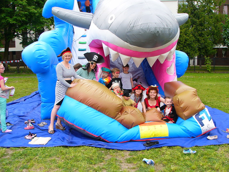 Tegoroczny festyn uświetniły dmuchańce udostępnione nam przez elbląską firmę, które nie tylko doskonale komponowały się z klimatem imprezy, ale również umożliwiły wspaniałą zabawę wszystkim dzieciom. Udało się również zorganizować konkurencję finałową „Bubble Football”, w której to zarówno dzieci, jak i dorośli mogli spróbować swoich umiejętności w grze w piłkę nożną w dmuchanych kulach. Podczas festynu nie zabrakło również zdrowego odżywiania! Firma współpracująca z naszą szkołą w programach „Szklanka Mleka” i „Warzywa i Owoce w Szkole” serwowała uczestnikom imprezy soki owocowo-warzywne, mleko smakowe, owoce oraz świeże jogurty truskawkowe za co serdecznie dziękujemy! Serdeczne podziękowania należą się również Straży Pożarnej w Elblągu, która umożliwiła uczestnikom festynu zwiedzanie wozów strażackich, oglądanie ich wyposażenia, zorganizowała pokaz gaszenia pożarów przy użyciu węża strażackiego a przede wszystkim każda rodzina mogła sięgnąć chmur poprzez podróż na wysięgniku strażackim! Tegoroczny festyn zorganizowany został we współpracy z Radą Rodziców.