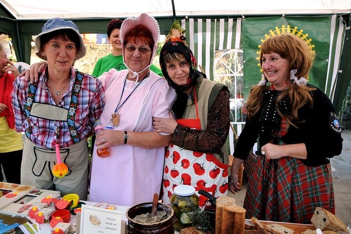 - To Babcia, Mamunia, Tatunio i ja, Dzidzia – przedstawiła „rodzinę” pani Nina. – Kryzys, bieda w kraju, ale my się nie dajemy i sami pieczemy chleb, mamy też smalczyk i ogóreczki. Mamy też bociuśki na szczęście i kaczuszki. Ziółka też, bo wracamy do babcinych sposobów. Melisa na przykład osy nam odgania.