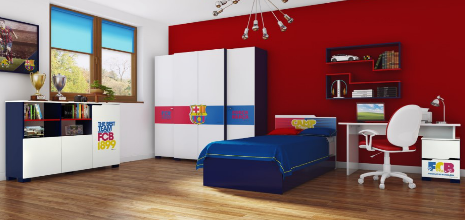 Mebli dla chłopca nikt nie pomyli. Motywy samochodowe, morskie oraz piłkarskie to ulubione cechy młodych panów. Jeśli jest się fanem Lewandowskiego to nie ma problemu, na szafie będzie pilnował nas wizerunek Roberta. Dla miłośników zagranicznej piłki FC Barcelona w pełnej krasie.