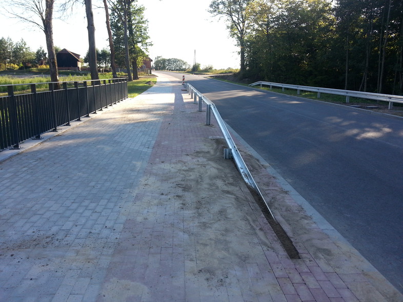 Droga nr 503 po modernizacji jest teraz piękną trasą, ale szybkiego ruchu. Jeśli jest to tylko złudzenie optyczne, droga wydaje się szersza i samochody wyprzedzają rowerzystów na trzeciego pędząc z kosmicznymi prędkościami. A skoro droga była budowana w wielu miejscach od podstaw wystarczyło wszędzie tam gdzie jest miejsce (większość terenu niezabudowanego) dodać choćby po 50 cm asfaltowego pobocza. Dalej, tylko projektant wie, po co w całym Suchaczu wybudowano ścieżkę rowerową wyłącznie na rondzie. Przecież jest to najbezpieczniejsze miejsce dla cyklistów w tej miejscowości, bo jak to zwykle jest na takim skrzyżowaniu, prędkości z jakimi poruszają się na nim pojazdy są minimalne. Warto dodać, że nie tylko lokalizacja jest w tym przypadku chybiona, ale również nie zachowano przewidzianej szerokości drogi dla rowerów oraz oznakowanie pionowe jest niekoherentne. I na koniec, największy absurd, jakim jest ciąg pieszo-rowerowy w Kadynach wykonany z ażurowej kostki betonowej – takiej jaką wykłada się parkingi lub zbocza nasypów by trawa mogła swobodnie rosnąć. Rozumiem wymogi konserwatorskie dla zabytkowej alei drzew, ale zmuszanie do jazdy (zakaz ruchu rowerem po jezdni) po czymś, co jest nieprzejezdne wydaje się niemądrym. Czy Pan Wiceprezydent podczas czerwcowego otwarcia trasy nie spojrzał na ten chodnik i nie zastanowił się, czy udało by mu się przejechać po tym chodniku swoją słynną jeszcze z czasów obchodów elbląskiego dnia bez samochodów kolarzówką? Tym bardziej, że na terenie całych Kadyn obowiązuje ograniczenie prędkości do 30 km/h, co zapewnia bezpieczeństwo wszystkim uczestnikom ruchu.