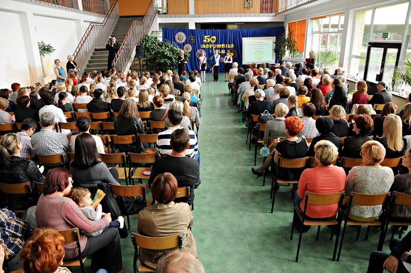 – W dniu naszego święta wracamy do wspomnień, sumujemy dotychczasowy dorobek i wybiegamy ku przyszłości – mówiła dyrektor szkoły Aleksandra Nieżurawska. – Kształt jej zależeć będzie od umiejętności ludzi, których teraz uczymy. Dzisiejszy dzień postanowiliśmy przeżyć w gronie rodzinnym, a więc w gronie pracowników i przyjaciół szkoły, bez blasku fleszy. Wszyscy zgromadzeni tutaj jesteśmy cząstką tej szkoły, szkoły, która również jest częścią nas, skrawkiem naszego życia, elementem naszej teraźniejszości. – Pięćdziesiąt lat istnienia naszej szkoły to nie tylko suche fakty czy daty. To również, a może przede wszystkim, nasze wspomnienia, uczucia i refleksje.