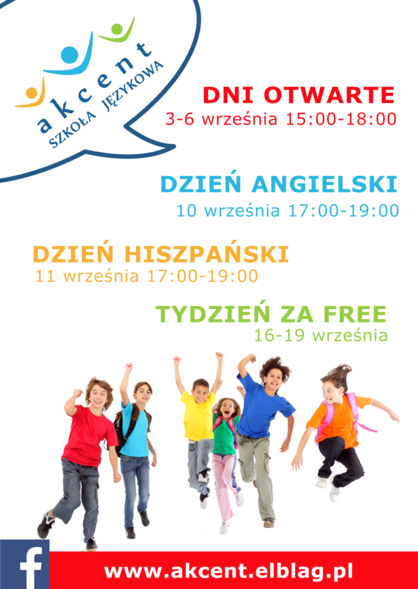 Znajdziecie nas na placu Dworcowym 3a, na I piętrze lub pod numerem tel. 665 868 688. Zajrzyjcie też na stronę www.akcent.elblag.pl i zróbcie darmowy test www.akcent.elblag.pl/sprawdz_sie.php.