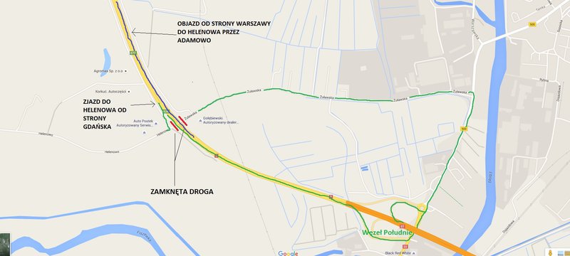 Zmiana polegać będzie na zamknięciu dla ruchu wlotu ul. Żuławskiej do DK7. Dojazd do ul. Żuławskiej dla pojazdów jadących drogą krajową DK7 i DK22 odbywać się będzie przez węzeł Elbląg Południe i ul. Warszawską. Podobnie odbywać się będzie dojazd do ul. Żuławskiej od strony Helenowa tj. przez DK7 (od strony Helenowa dopuszczona będzie relacja w prawo) i dalej do Węzła Elbląg Południe i ul. Warszawską. Dojazd do Helenowa możliwy będzie przez skrzyżowanie DK7 z drogą powiatową 1103N przez Adamowo Osiedle oraz drogę powiatową 1112N. Dojazd od strony Gdańska do Helenowa i firm położonych po południowej stronie DK7 będzie możliwy także poprzez zjazd z DK7 poprzez łącznik drogą lokalną przed skrzyżowaniem z ul. Żuławską. W związku z powyższym prosimy kierowców o ostrożność i zwracanie uwagi na nowe oznakowania.