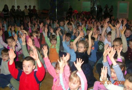 Zróżnicowane zabawy z elementem muzykoterapii i ciekawe konkursy sprawiały, że maluchy nie miały czasu na nudę. Bez przerwy były zapraszane do coraz to nowych wyzwań i zabaw, którym zdołały sprostać z ogromną satysfakcją. Nagrodą były słodycze.