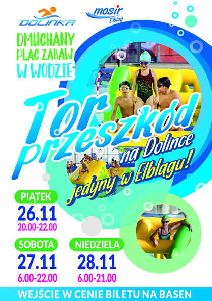 Po raz drugi w Elblągu pojawią się tory przeszkód na wodzie. Jest to znakomita forma spędzenia wolnego czasu dla dzieci i dorosłych. W strefie rekreacyjnej, czyli w basenie do nauki pływania, będzie mniejszy dmuchany tor dla dzieci. Natomiast w basenie sportowym znajdzie się ten dłuższy i większy. Będzie się różnił od tego, który był dostępny we wrześniu, więc warto spróbować czy pokonanie go będzie łatwiejsze czy trudniejsze.