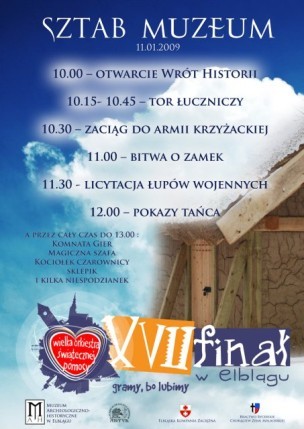 W najbliższą niedzielę, 11 stycznia w całej Polsce rozbrzmiewać będą dźwięki Wielkiej Orkiestry Świątecznej Pomocy Jurka Owsiaka. Tym razem będziemy zbierać środki na zakup sprzętu do wczesnej diagnostyki chorób nowotworowych u dzieci. W tym roku, już po raz drugi, również elbląskie Muzeum Archeologiczno-Historyczne przyłącza się do akcji i organizuje w swoich budynkach orkiestrowy sztab. Impreza odbędzie się w godz. od 10 do 13. Zobacz fotoreportaż .