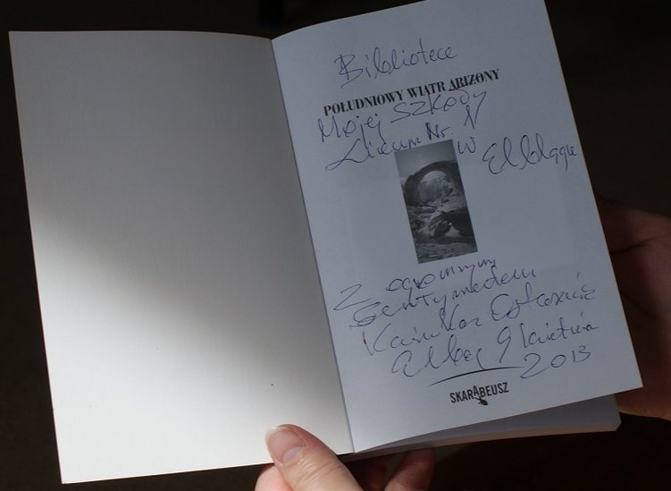 Pisarz zaprezentował swój dorobek, przeczytał kilka swoich wierszy, odbiór których ułatwił zrozumienie jego tęsknoty za krajem. Przemiły, ciepły ton, z jakim poeta wspominał odległą Arizonę, wychwalając jej piękno, kontrasty i dokonując jej porównania z Polską, może utkwić w pamięci spotykającej się z nim młodzieży. „Jest to ukochany, wybrany kawałek jego świata.” Nic dziwnego, że mówił o tej krainie „Moja Arizona”.