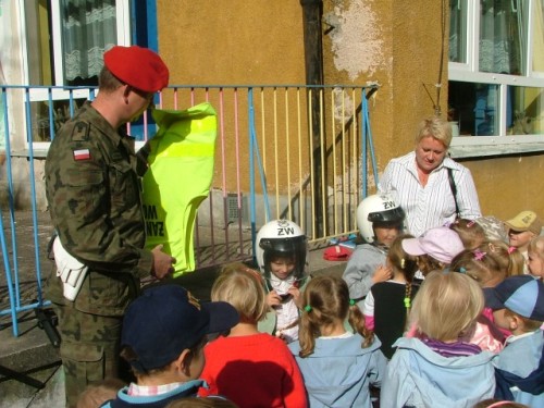 Niecodziennych gości miały dziś (24 września) dzieci z Przedszkola nr 15. Zawitała do nich bowiem Żandarmeria Wojskowa. Przedszkolaki podczas spotkania nie tylko dowiedziały się na czym polega praca żandarmów, ale też miały okazję zajrzeć do wojskowego auta, przymierzyć hełm oraz…kajdanki.  Zobacz zdjęcia.